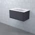 Tvättställsskåp Mejda Kompakt Låg från Björbo Badrum är en modern kommod med en inramande stomme som levereras utan tvättställ och blandare. Detta lite grundare skåp har djupa och mycket stabila fullutdragslådor i svartbetsat trä med mjukstängning och självindrag. Det levereras med vattenlås, lådindelare i svartbetsat trä och lådmattor.