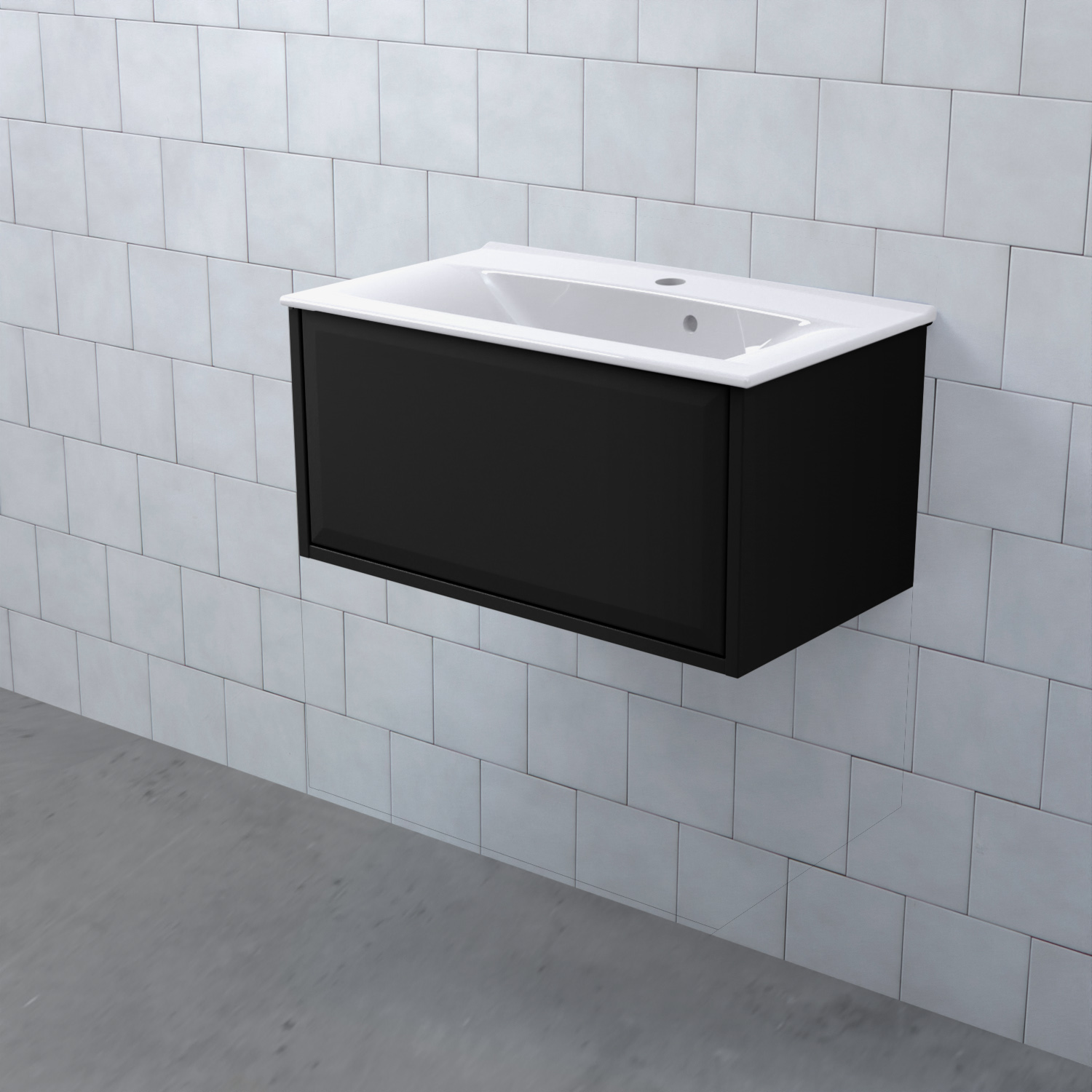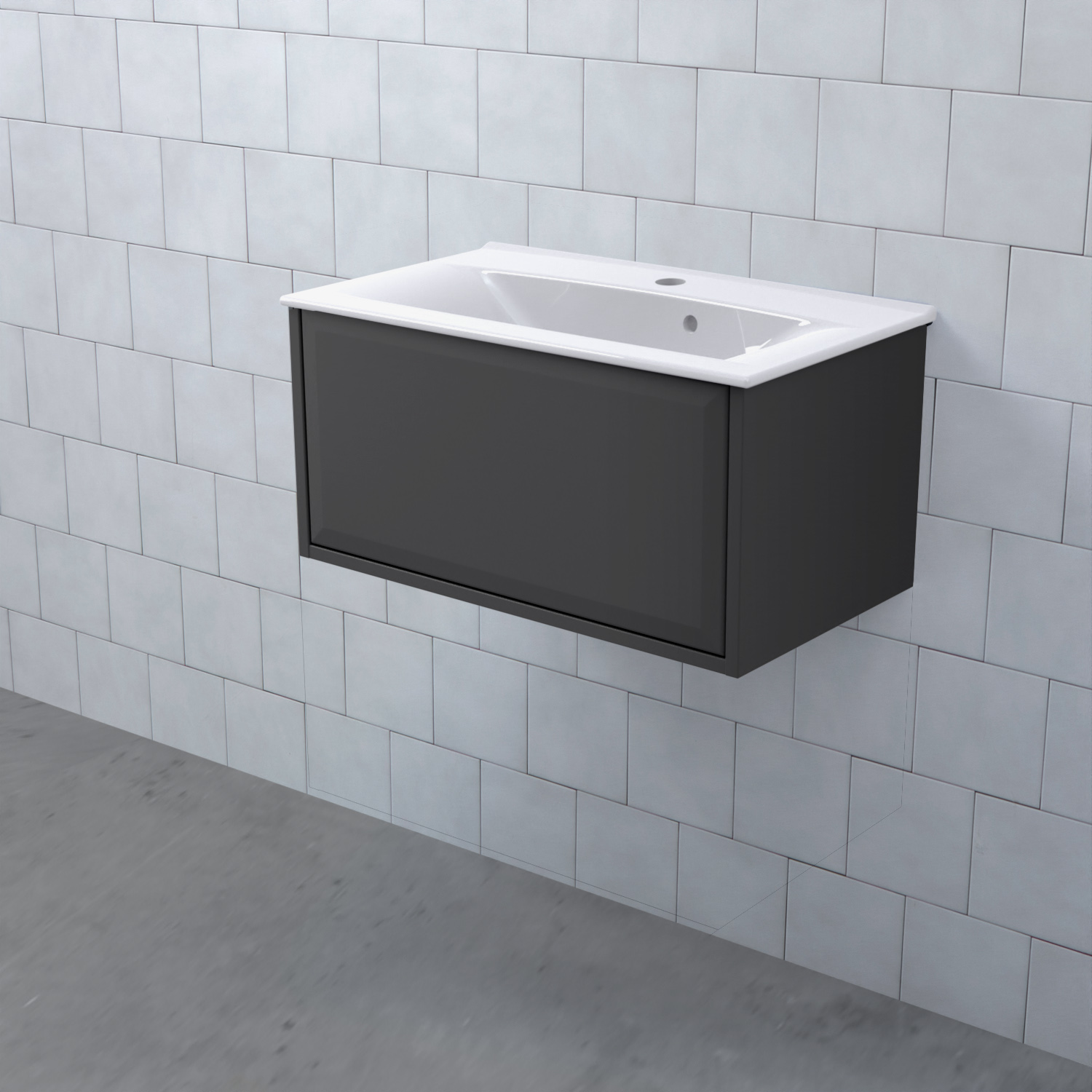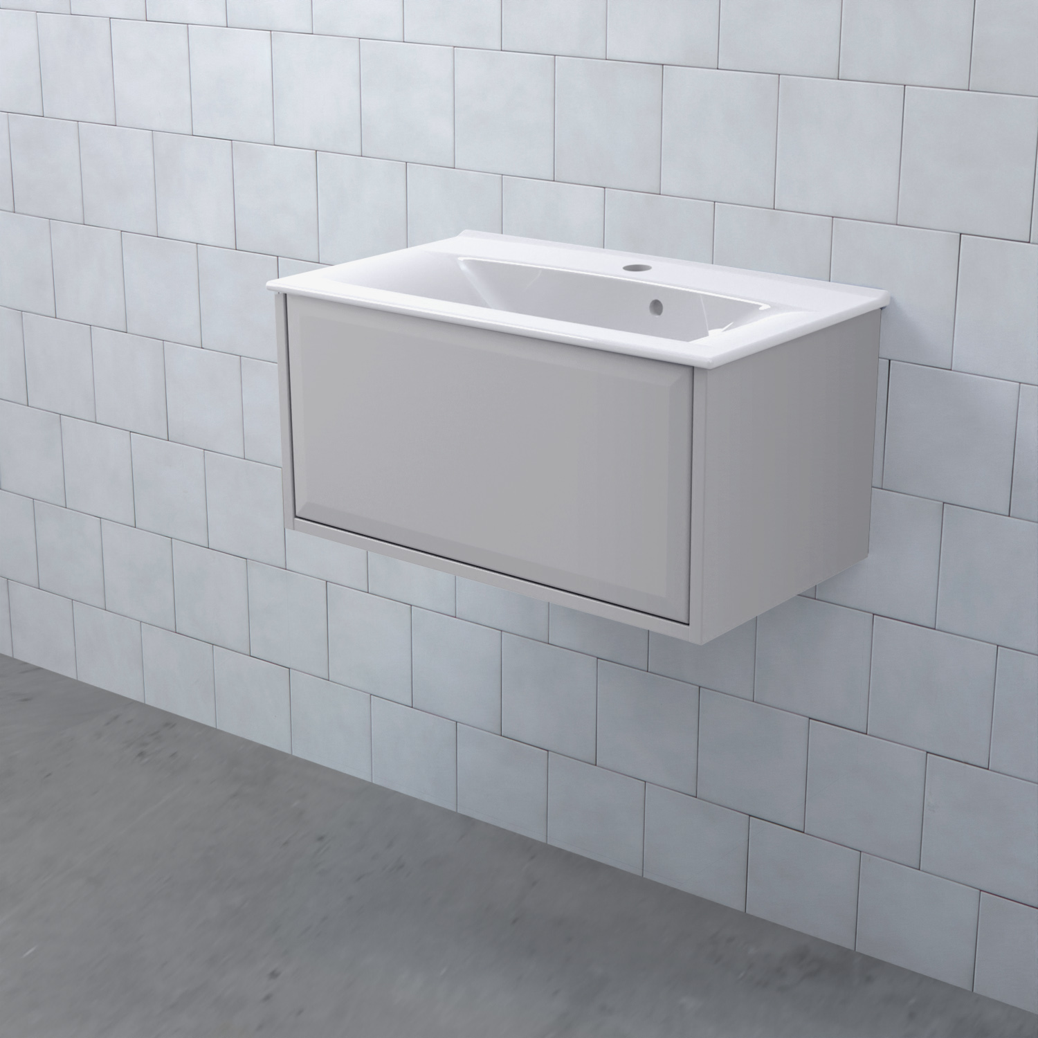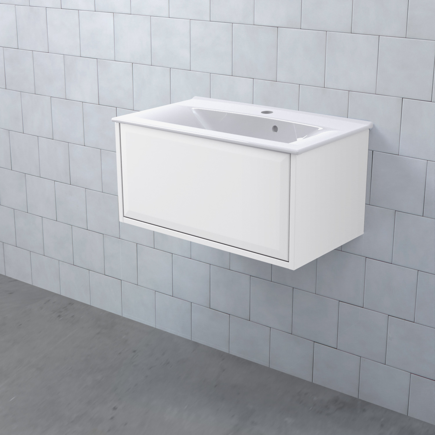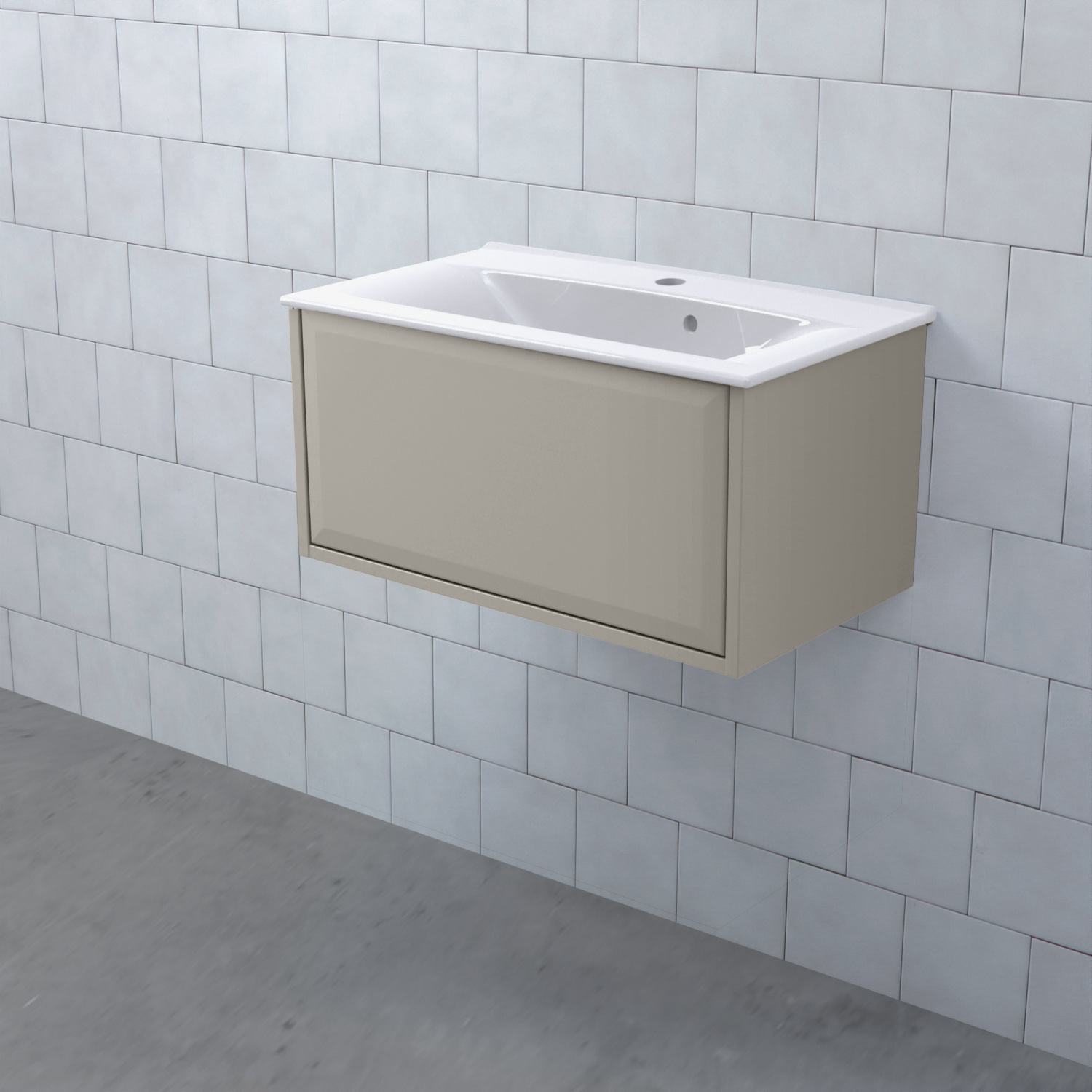 Stommen är tillverkad av fukttrögt skivmaterial och skåpet levereras färdigmonterat och transportförpackat från fabrik. Komplettera din möbel med tvättställ, blandare, handtag, eluttag, extra lådindelare och ben. Du kan välja mellan olika heltäckande tvättställ, ovanpåliggande tvättställ med medföljande bänkskiva eller en bänkskiva med ett underlimmat porslinstvättställ, allt efter eget tycke och smak.