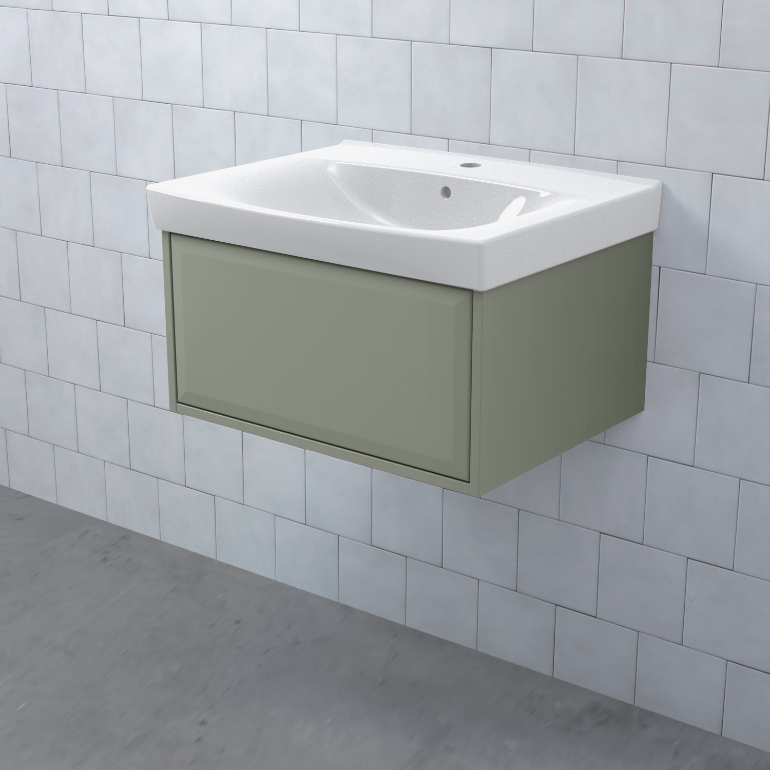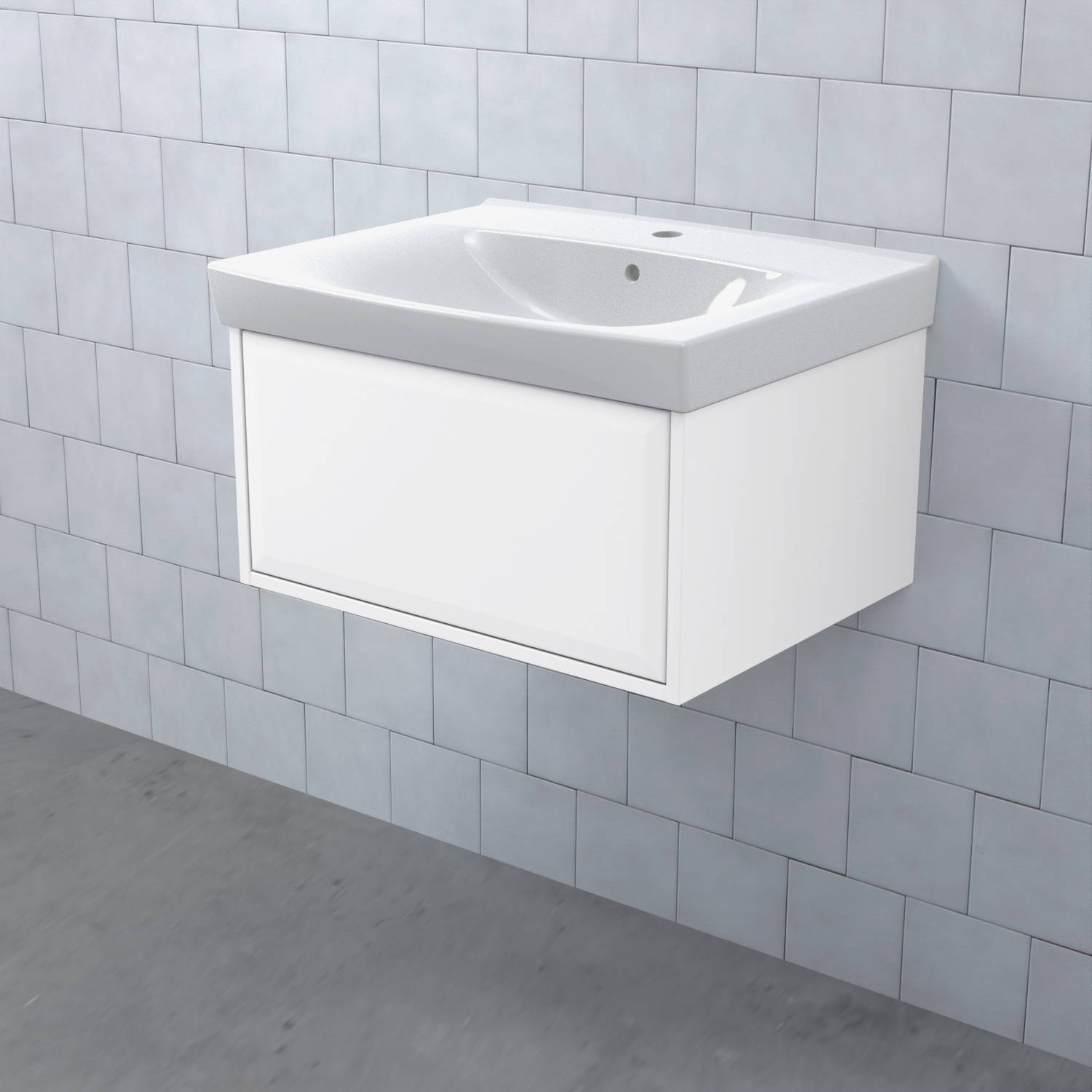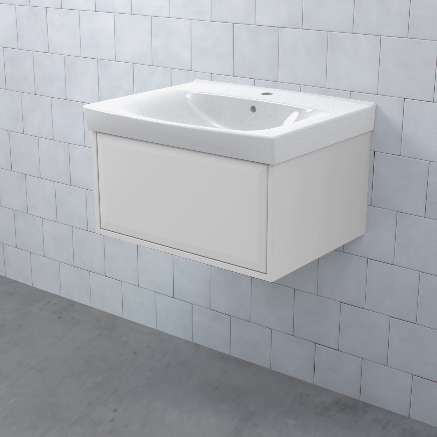 Stommen är tillverkad av fukttrögt skivmaterial och skåpet levereras färdigmonterat och transportförpackat från fabrik. Komplettera din möbel med tvättställ, blandare, handtag, eluttag, extra lådindelare och ben. Du kan välja mellan olika heltäckande tvättställ, ovanpåliggande tvättställ med medföljande bänkskiva eller en bänkskiva med ett underlimmat porslinstvättställ, allt efter eget tycke och smak.