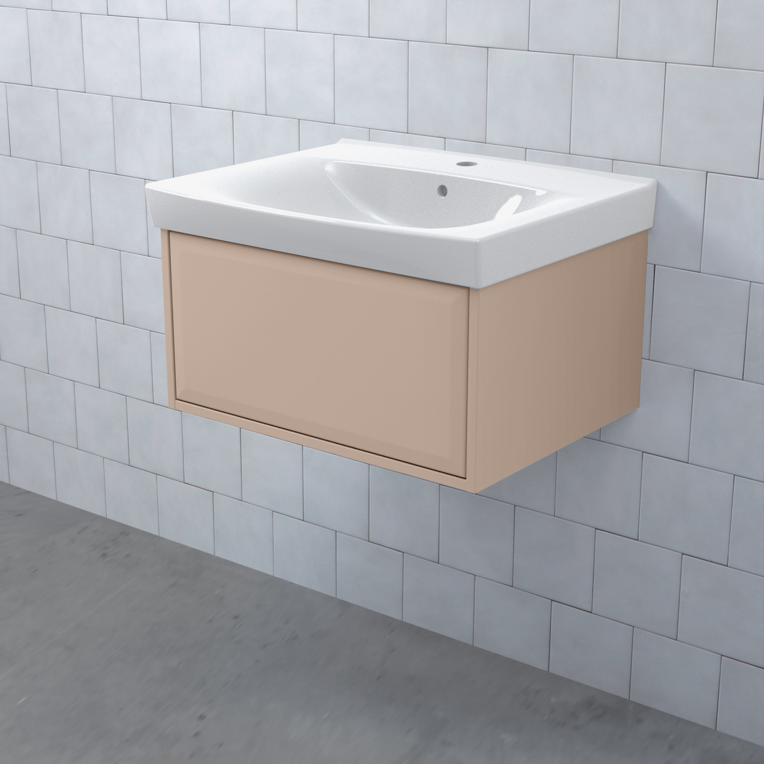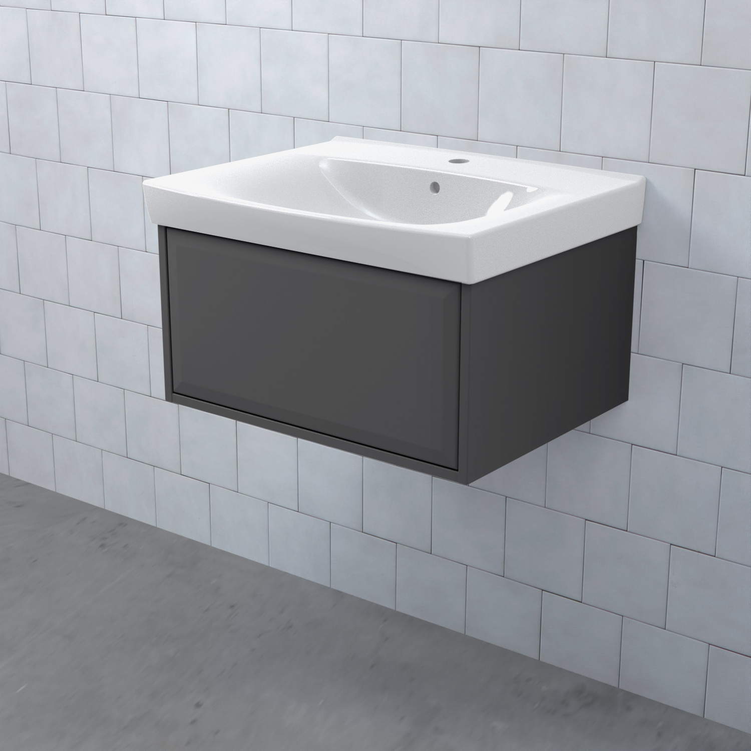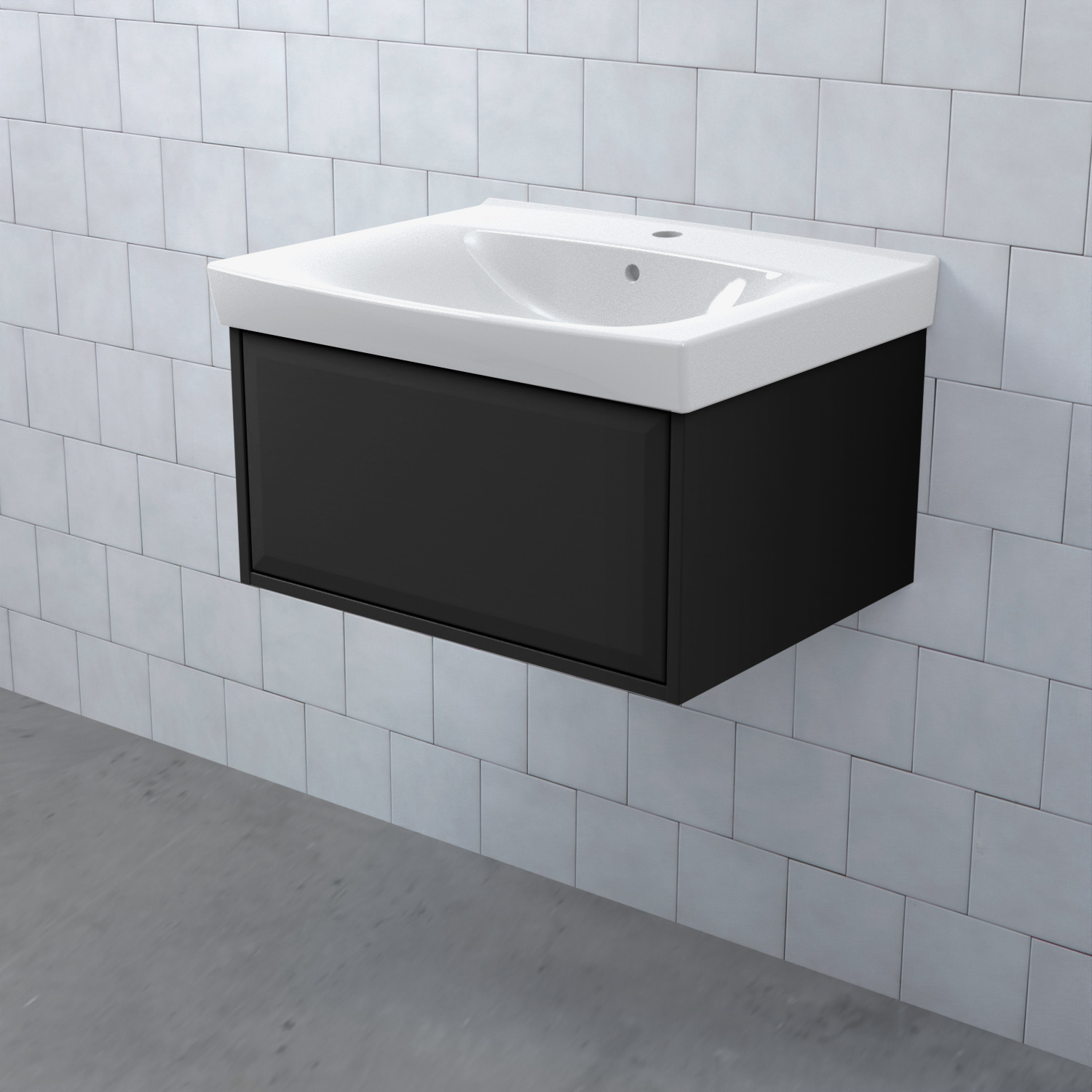 Stommen är tillverkad av fukttrögt skivmaterial och skåpet levereras färdigmonterat och transportförpackat från fabrik. Komplettera din möbel med tvättställ, blandare, handtag, eluttag, extra lådindelare och ben. Du kan välja mellan olika heltäckande tvättställ, ovanpåliggande tvättställ med medföljande bänkskiva eller en bänkskiva med ett underlimmat porslinstvättställ, allt efter eget tycke och smak.