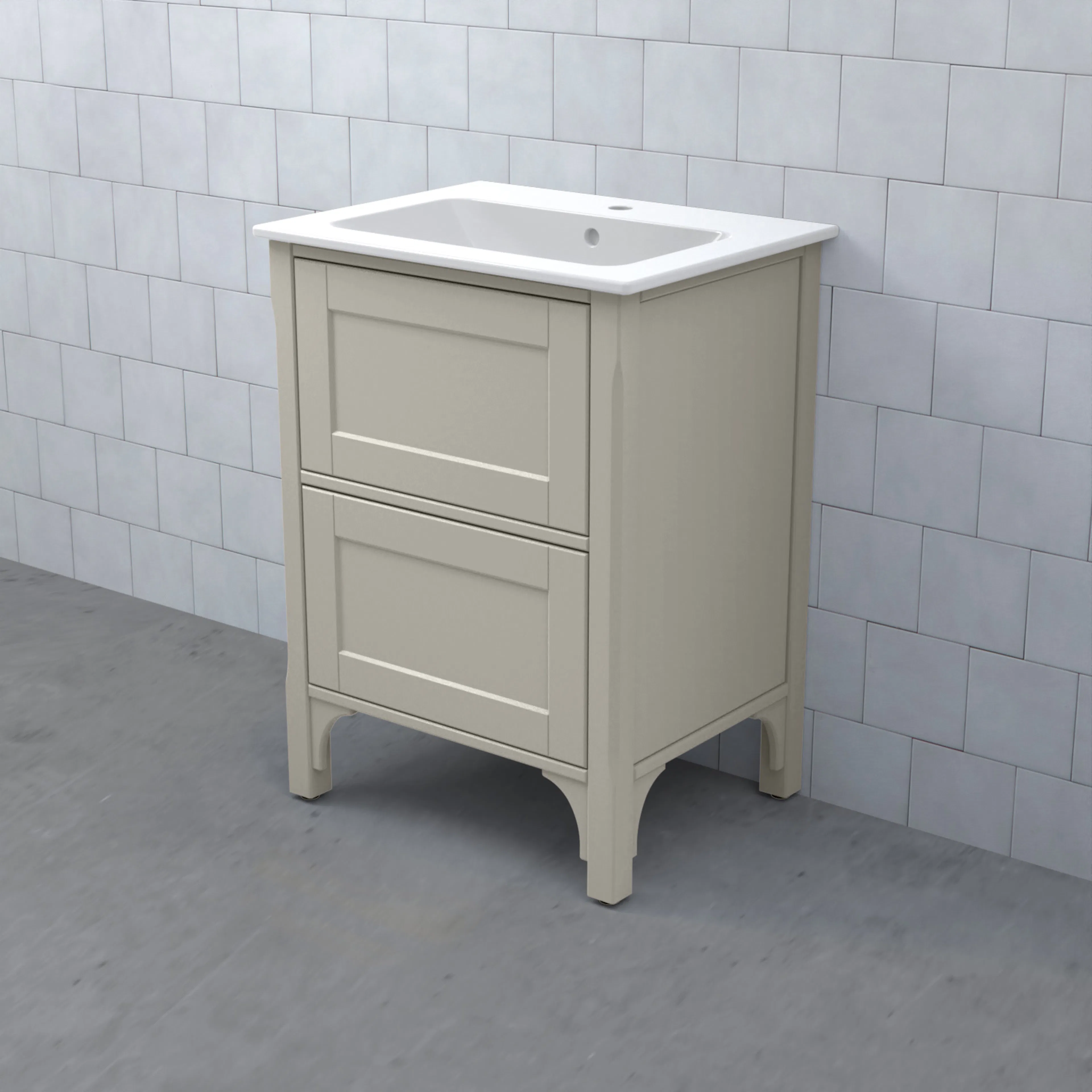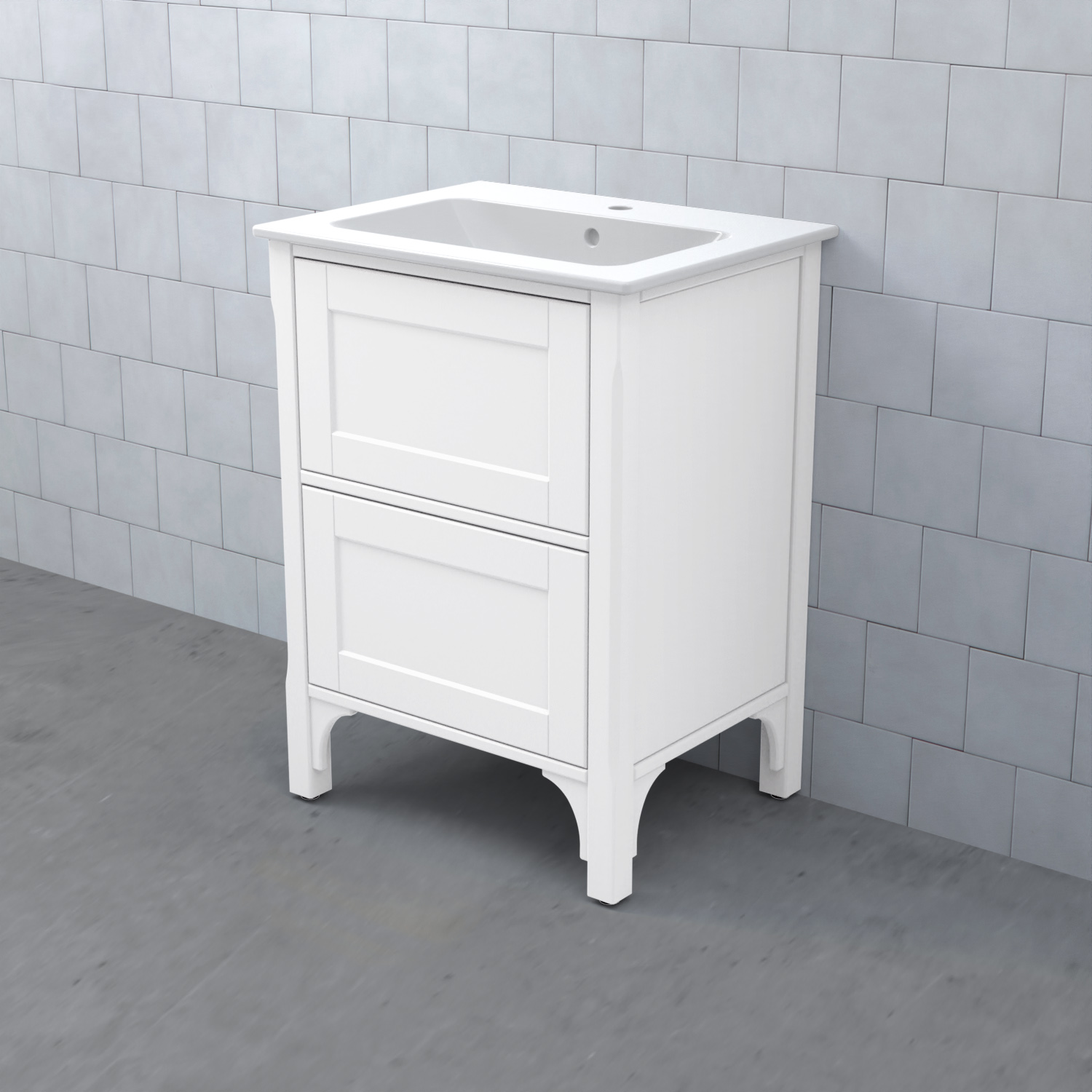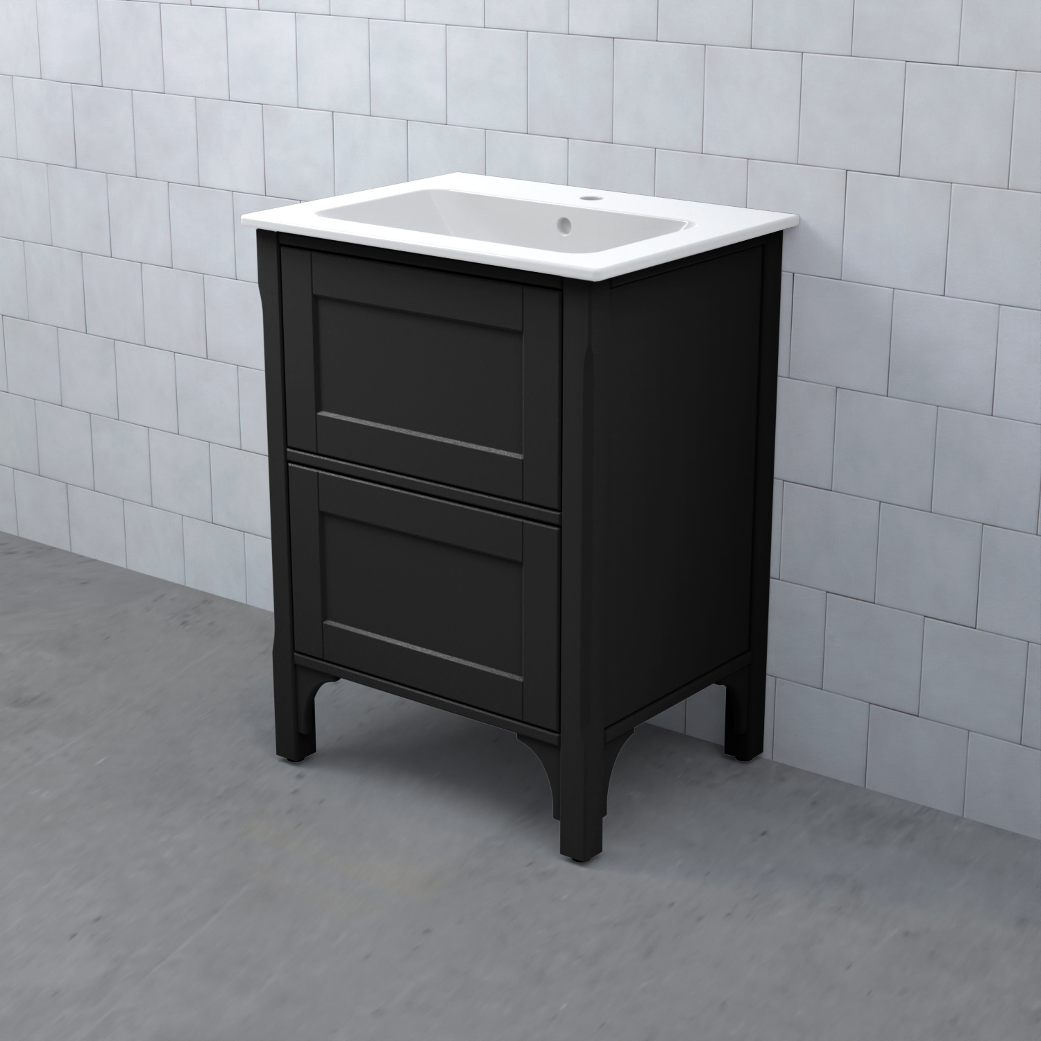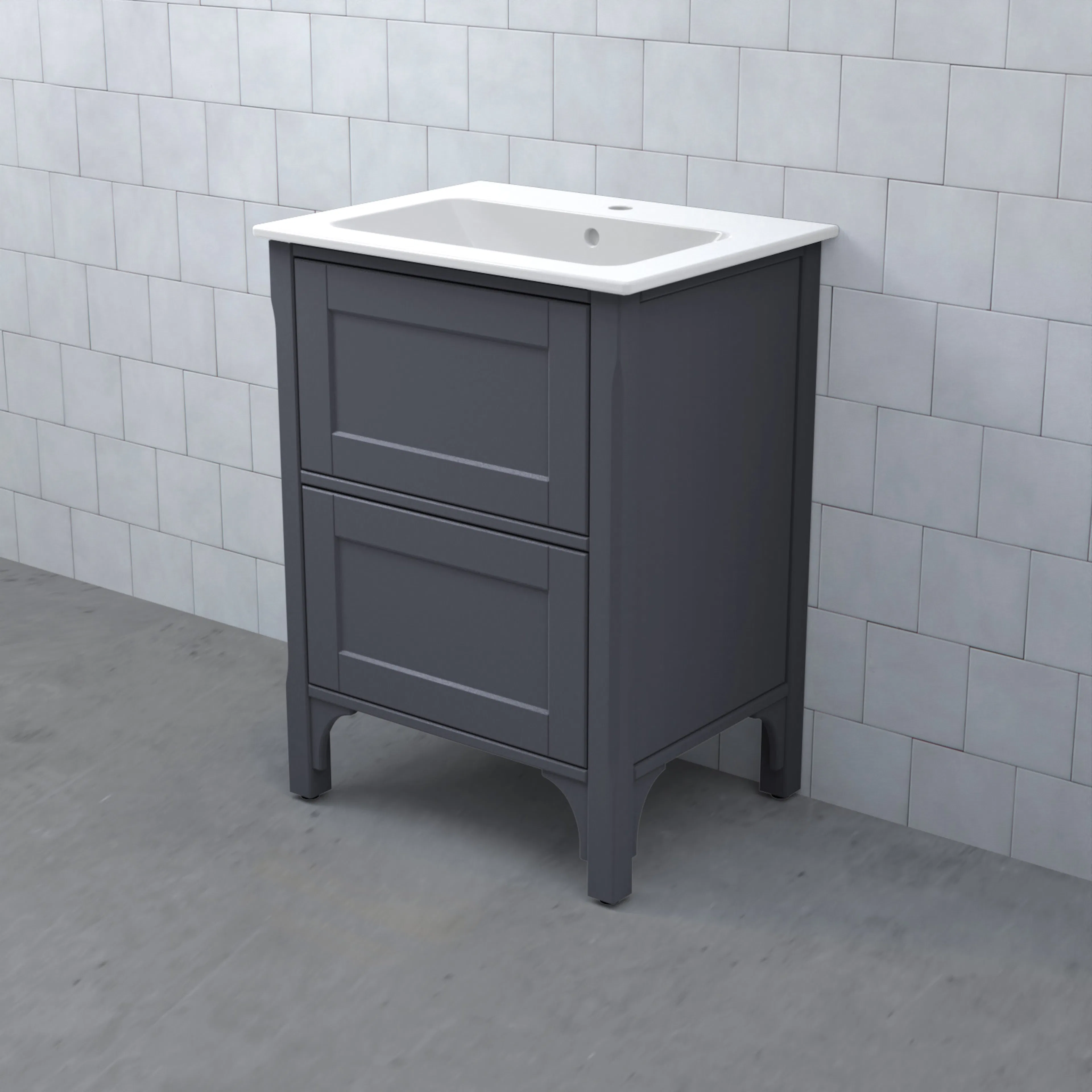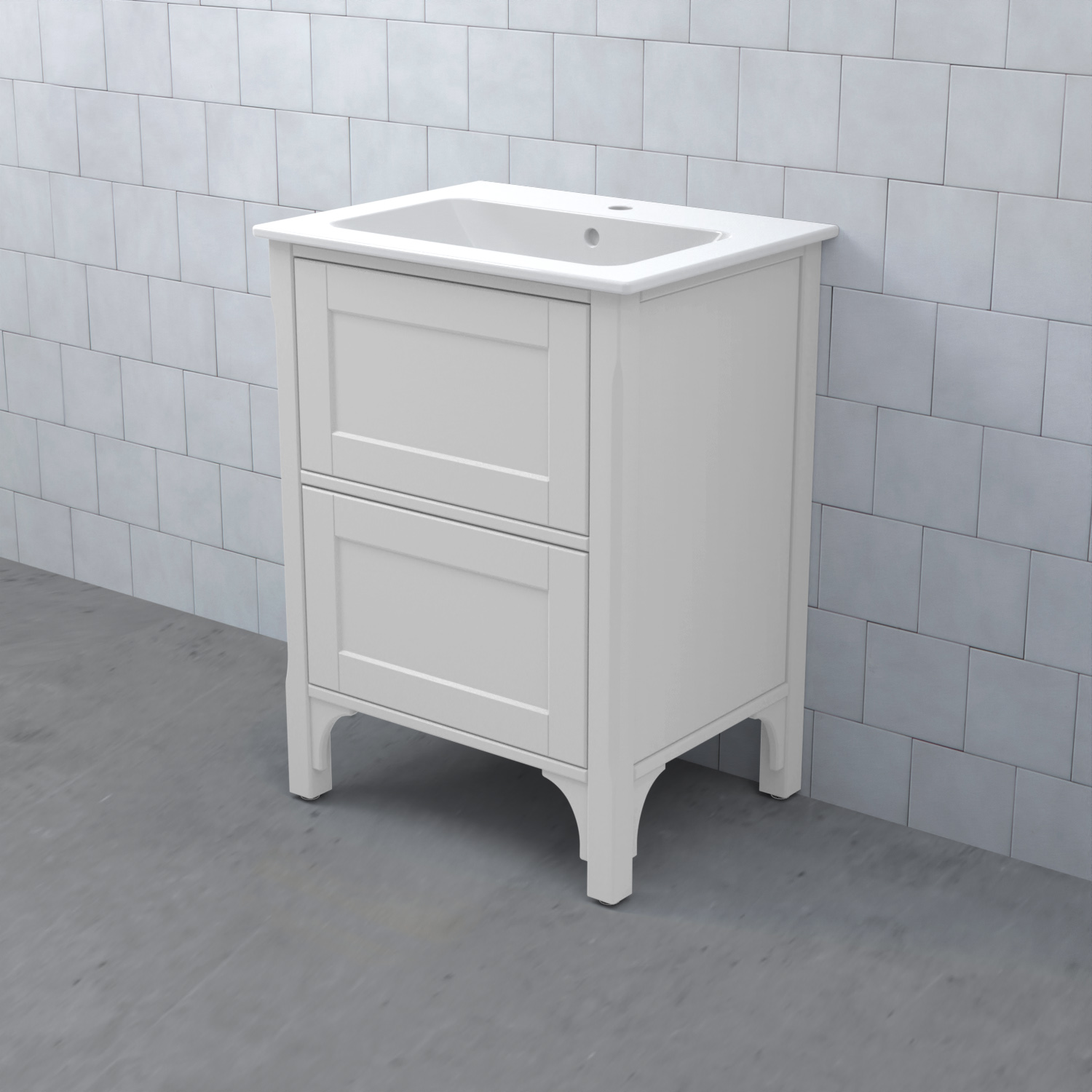Komplettera ditt tvättställsskåp med ett tvättställ, blandare och handtag. Det finns flera olika tvättställ att välja på: heltäckande porslinstvättställ, bänkskiva med underlimmat porslinstvättställ eller heltäckande granittvättställ med eller utan integrerad LED-belysning.