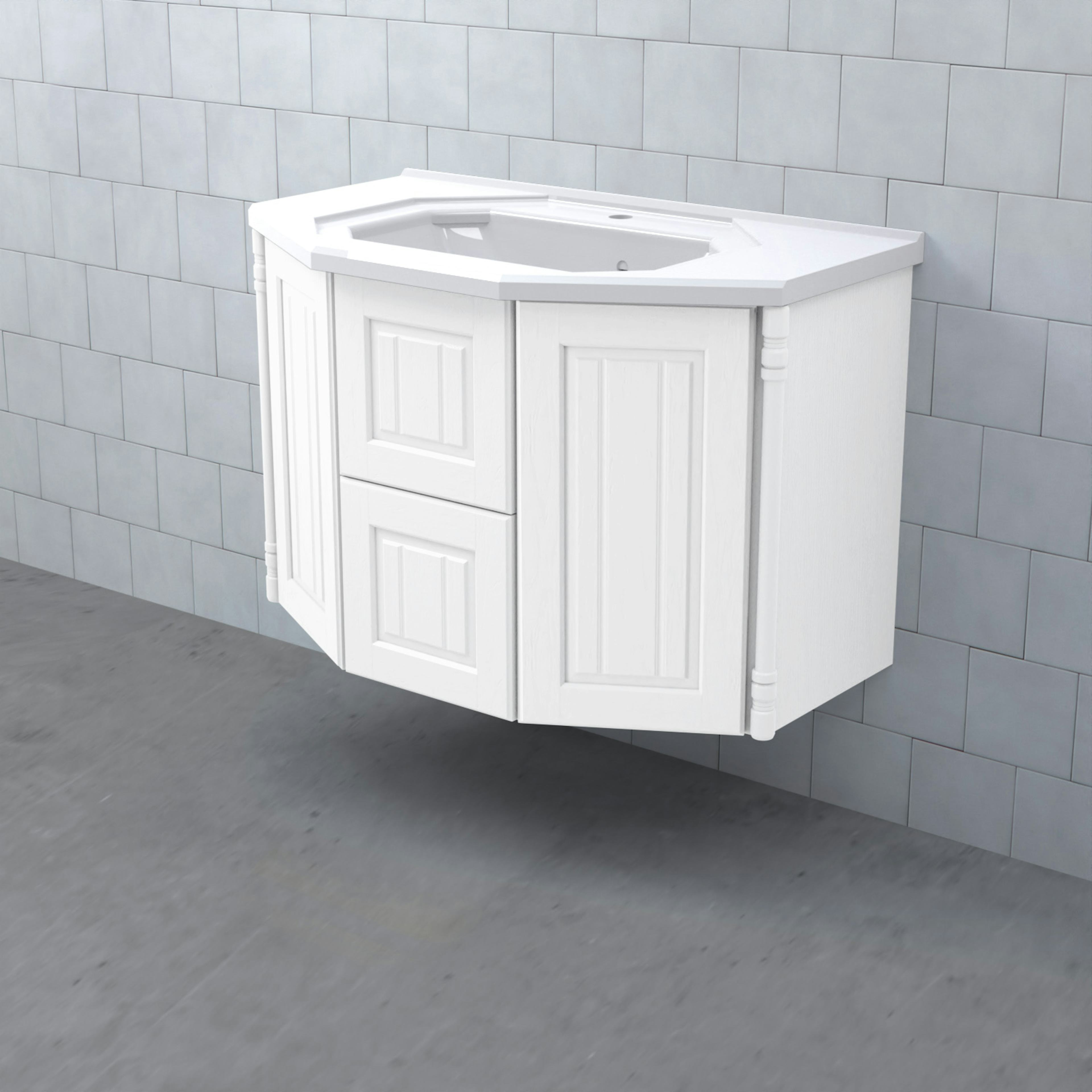Tvättställsskåp Valhall Lådor från Björbo Badrum är ett elegant tvättställsskåp med sekelskiftesdetaljer som levereras utan tvättställ, handtag och blandare. Badrumsskåpet har två stabila fullutdragslådor med dämpning och självindrag och två sidoskåp med luckor. Det leverer med vattenlås, lådindelare och lådmattor. Skåpet är tillverkat av målad MDF.