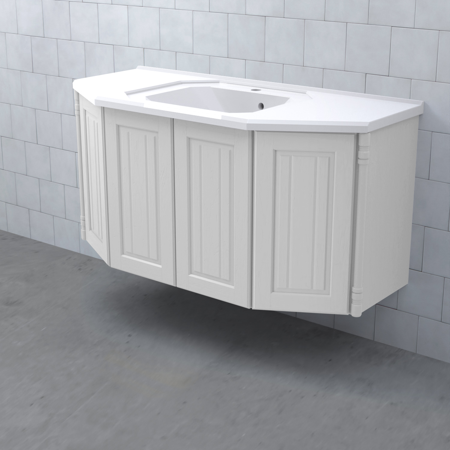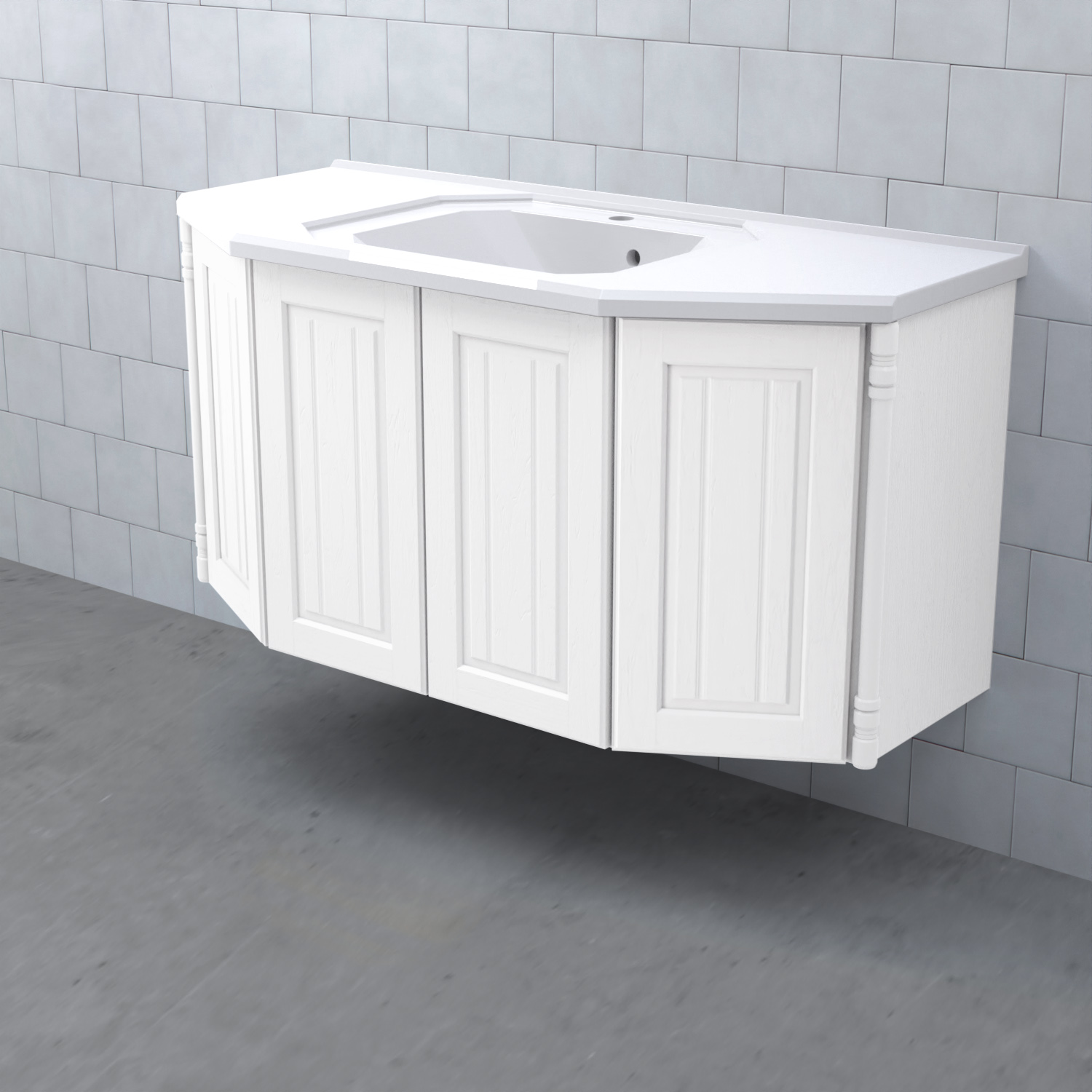 Tvättställsskåp Valhall Luckor från Björbo Badrum är ett elegant tvättställsskåp med sekelskiftesdetaljer som levereras utan tvättställ, handtag och blandare. Detta badrumsskåp har luckor gjorda av målad, präglad MDF och leverer med vattenlås, lådindelare och lådmattor. Stommen är gjord av målad MDF.