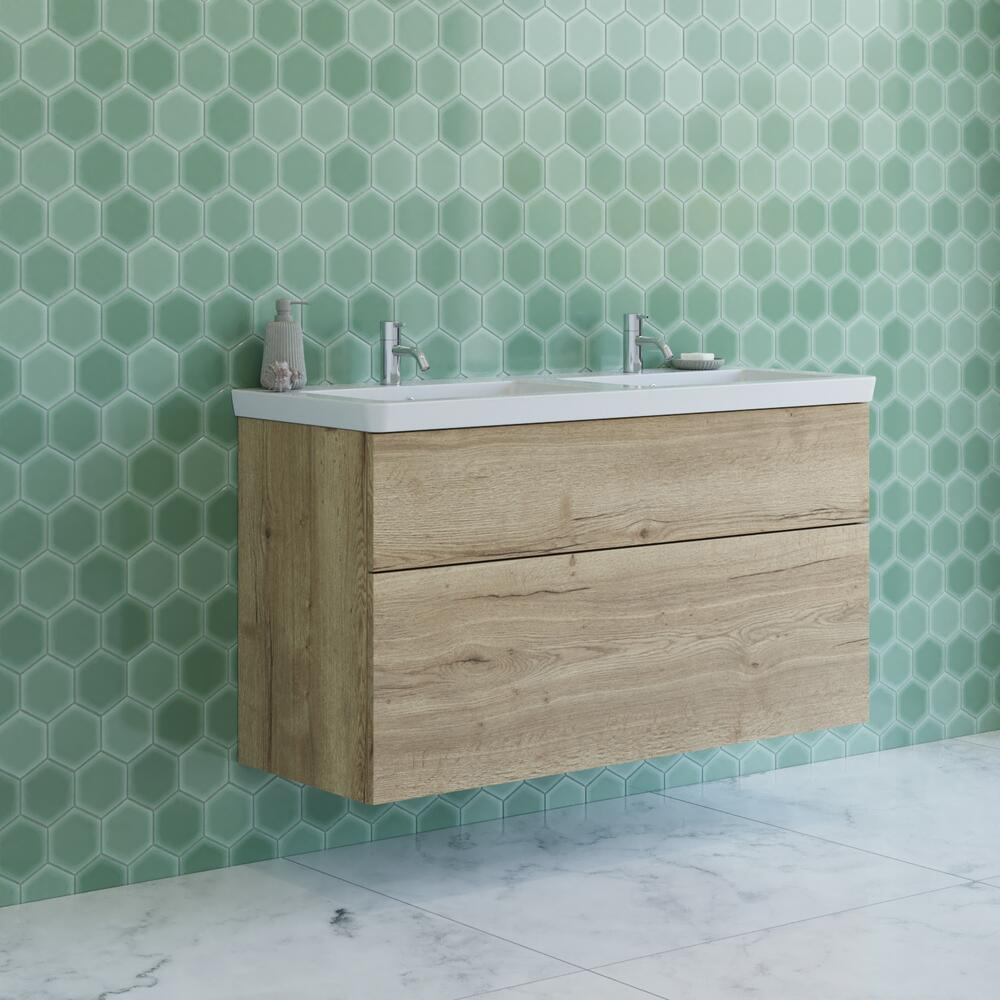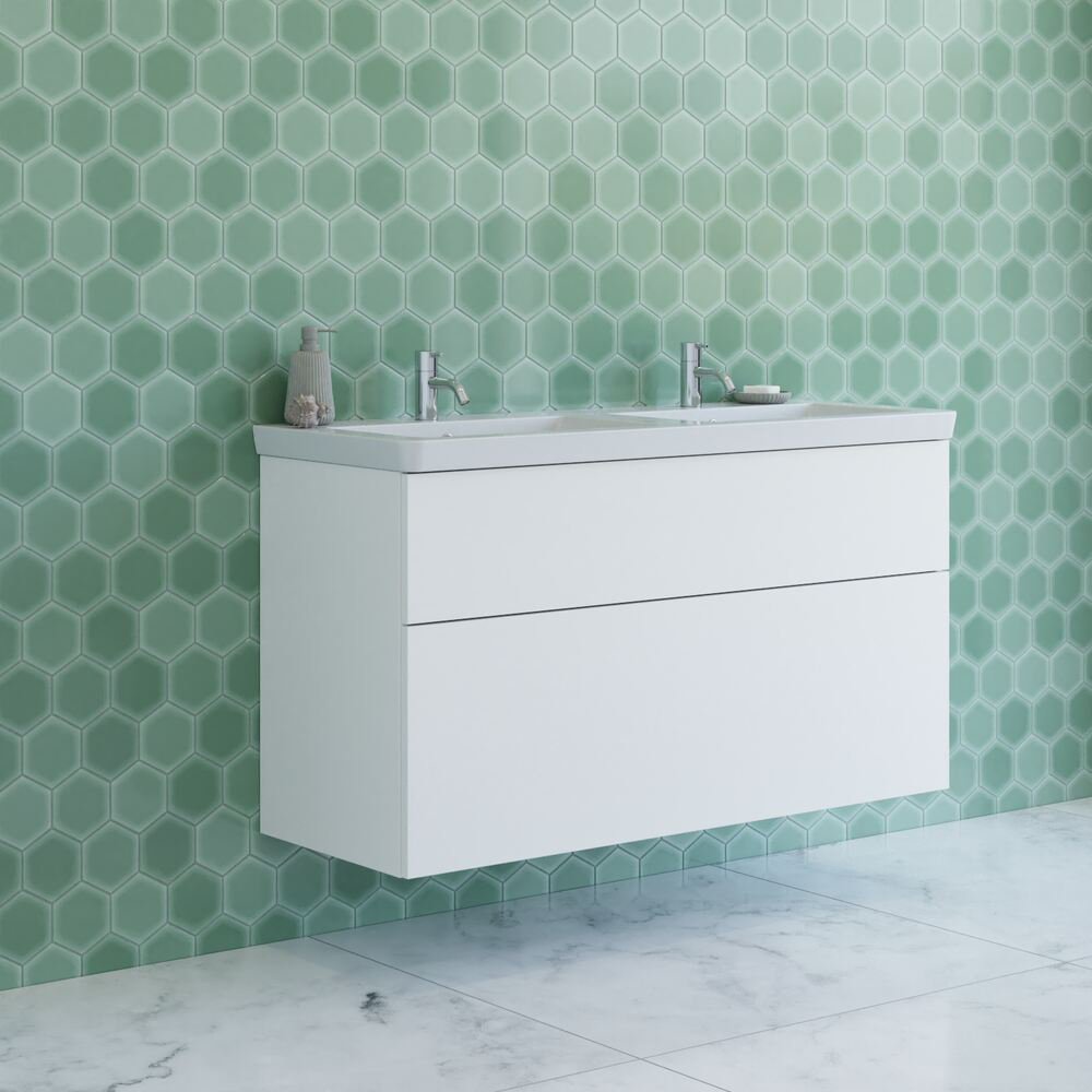 Möbelpaketet är designat och tillverkat i Danmark med fokus på hållbar kvalitet, funktionalitet och estetiskt uttryck. Luna Larghetto Dubbel är en helhetslösning för dig som vill ha ett badrum med plats för fler, utan att tumma på varken stil eller struktur.