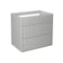 Tvättställsskåpet har plats för rördragning bakom lådorna. Skåpet är tillverkat av fukttrög MDF som är klassad för badrum och det har samma material och färg på stomme, lådfronter och lådor.