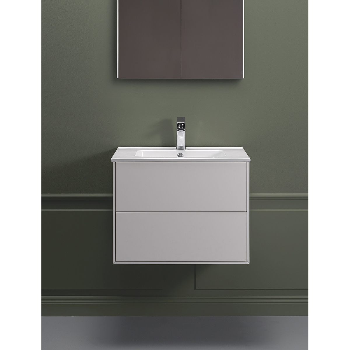 Skåpet finns i flera utföranden. Komplettera ditt tvättställsskåp med ett fristående tvättställ och bänkskiva eller ett inbyggt tvättställ, ett PUM-vattenlås och en tvättställsblandare. Lådbelysning, eluttag och handtag finns som tillbehör.