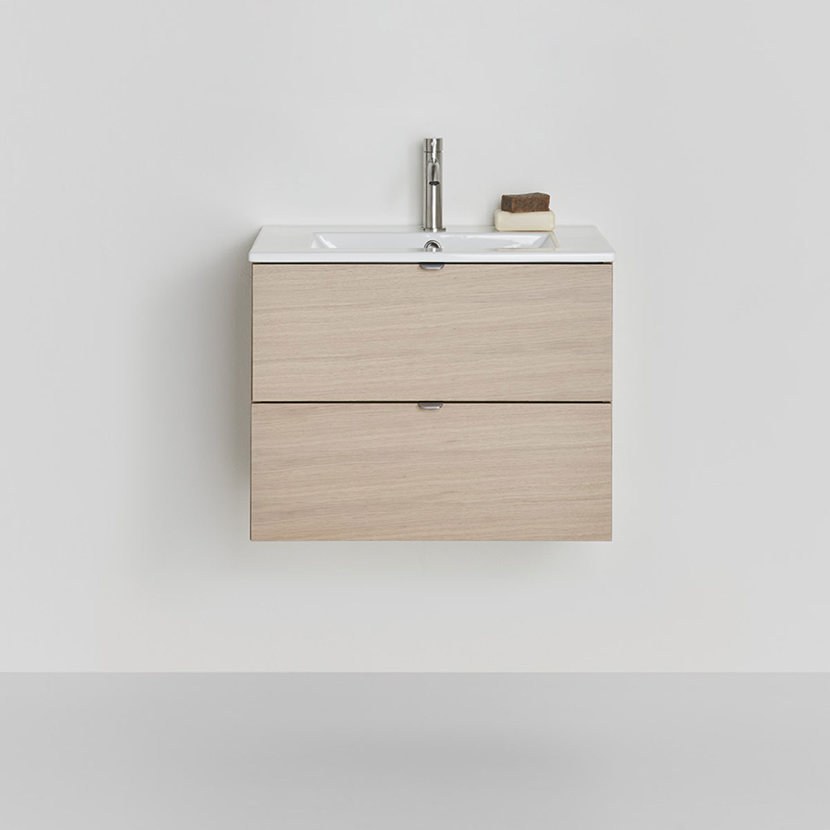 Hafa Go tvättställsskåp med porslinstvättställ är praktiska och stilrena badrumsmöbler med släta fronter och möjlighet för dig att sätta din stil genom att komplettera med något av våra handtag. Två mjukstängande lådor med fullutdrag ger bra överblick över innehållet.