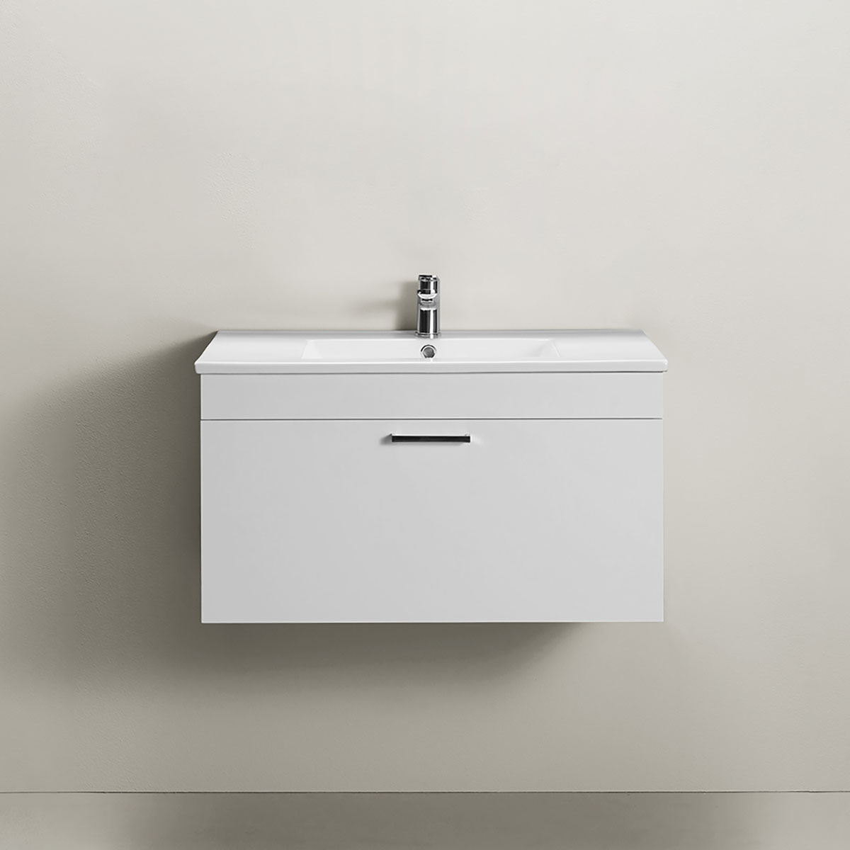 Tvättställsskåp med mjukstängande låda som ger generös förvaring. Tvättställsskåpet är enkelt att installera för en person med skena på vägg. Hafa Go badrumsskåp finns i flera bredder och färger.