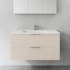 Komplettera med fristående handfat på en bänkskiva eller nedsänkt tvättställ i porslin, handtag och PUM-vattenlås för kommod. Lådbelysning och eluttag finns som tillval.