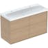 Lådorna kan förses med push-to-open funktion, handtag eller knopp. Lådorna har ingen utskärning för vattenlås vilket ger mer förvaringsutrymme. Platsbesparande avlopp med pop-up ventil från Geberit ingår och önskar man extra stöd till tvättställskåpet så går det att köpa till ben. Antiglidmatta för att hålla badrumsprylarna på plats ingår.