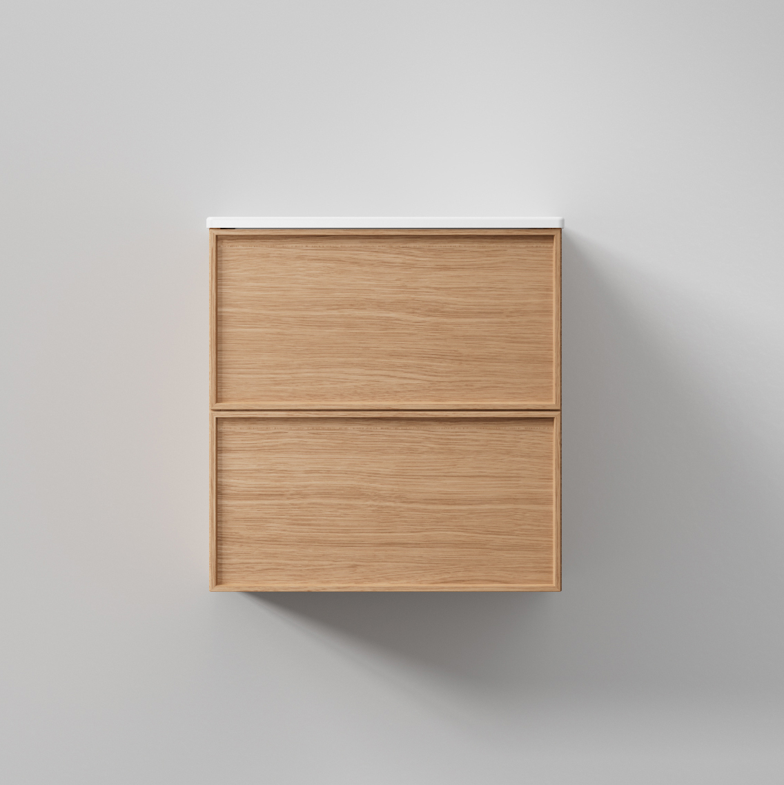 Tvättställsskåp INR Core XS Sense har ett djup på endast 390 mm och är utformad för att passa små badrum utan att göra avkall på stil eller funktionalitet.