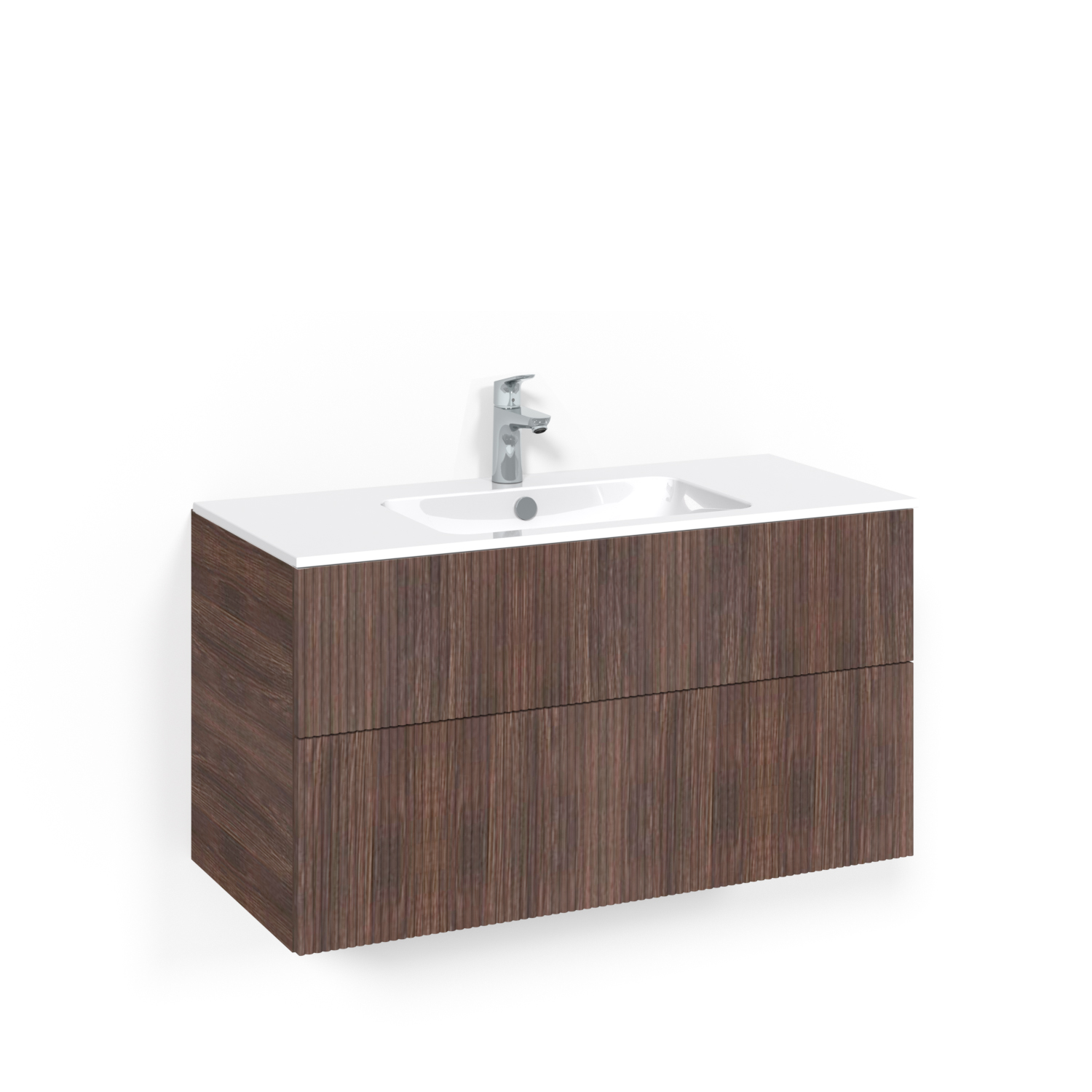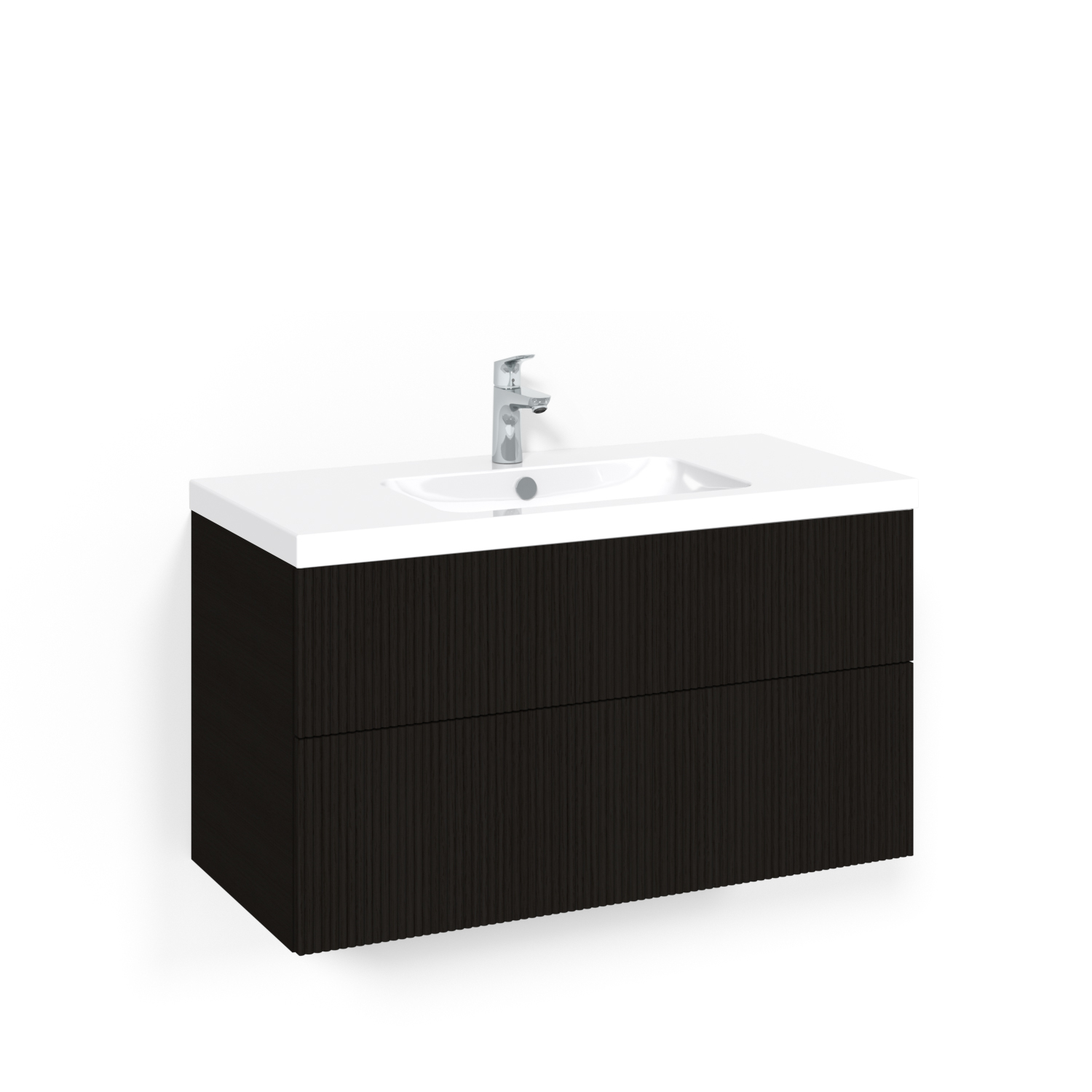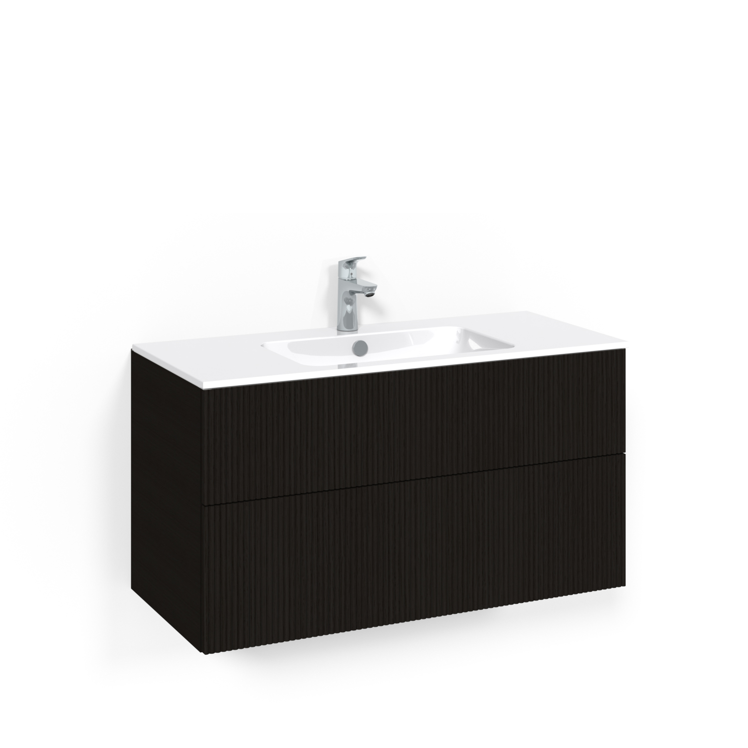 Tvättställsskåp Macro Design Crown Line är en svensktillverkad möbel där det ingår tvättställ och två mjukstängande och rymliga lådor.