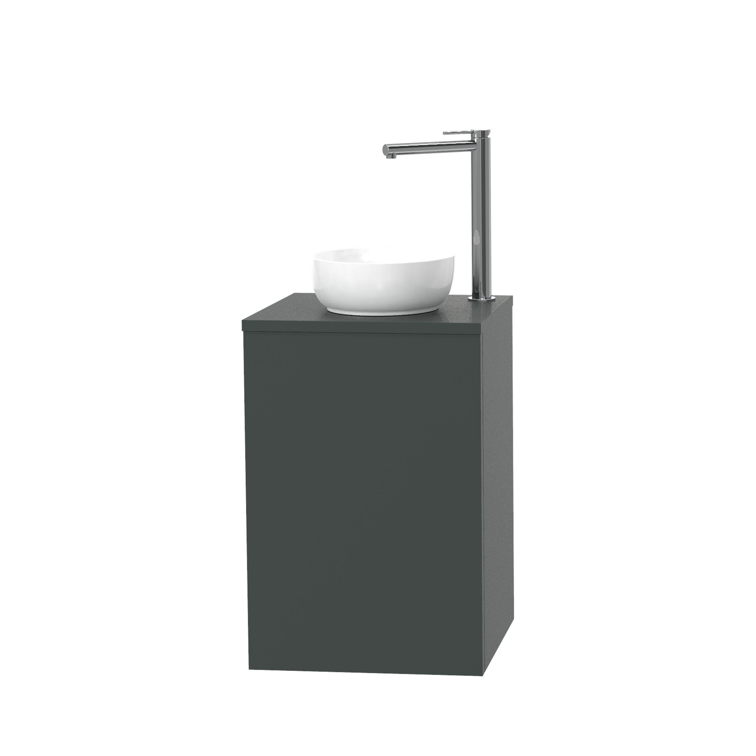Tvättställsskåp Miller Badrum City 40 för Bänkskiva är ett stilrent tvättställsskåp med lucka och silkeslen matt yta. Den matta ytan reflekterar minimalt med ljus och skapar en sober effekt i ditt badrum. Nanotekniken som används i materialet är den mest reptåliga yta Miller Badrum kan erbjuda och detta medför ökad slitstyrka och längre hållbarhet. Det innovativa materialet i ytan motverkar även fingeravtryck och är tack vare sin exceptionella täthet smuts- och vattenavvisande.