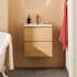 Tvättställsskåp Noro Vega är en modern möbel i ett praktiskt, lite mindre mått och med porslinstvättställ. De två lådorna med Soft Close skapar gott om förvaring för ett litet badrum och har integrerade grepp. Badrumsskåpet har en tålig lackerad yta och är dessutom förberett för vägg- och golvavlopp.