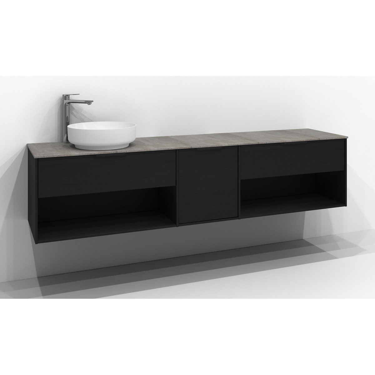 Tvättställsskåp Svedbergs Epos är ett tvättställsskåp som framtagits i samarbete med interiördesignern Halvor Bakke. Med ett tvättställsskåp med bredd från 80 till 200 cm får man plats med det mesta. Tvättställsskåpet har en grafisk bas med rena linjer som ramar in fronterna och hela serien andas kvalitet. Välj mellan fronterna Plan, Relief (integrerat handtag) och Rand (massiv trä). Du kan sedan välja mellan lådor, öppen förvaring eller semiöppenförvaring (tillval plåtlåda) för att anpassa möbeln efter just ditt behov och stil.