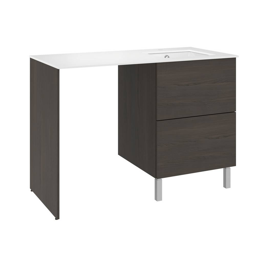 - Tvättstället levereras separat, med hål för blandare och tvättställ färdigt i bänkskivan. (Blandarens placering är centrerad längst bak.)