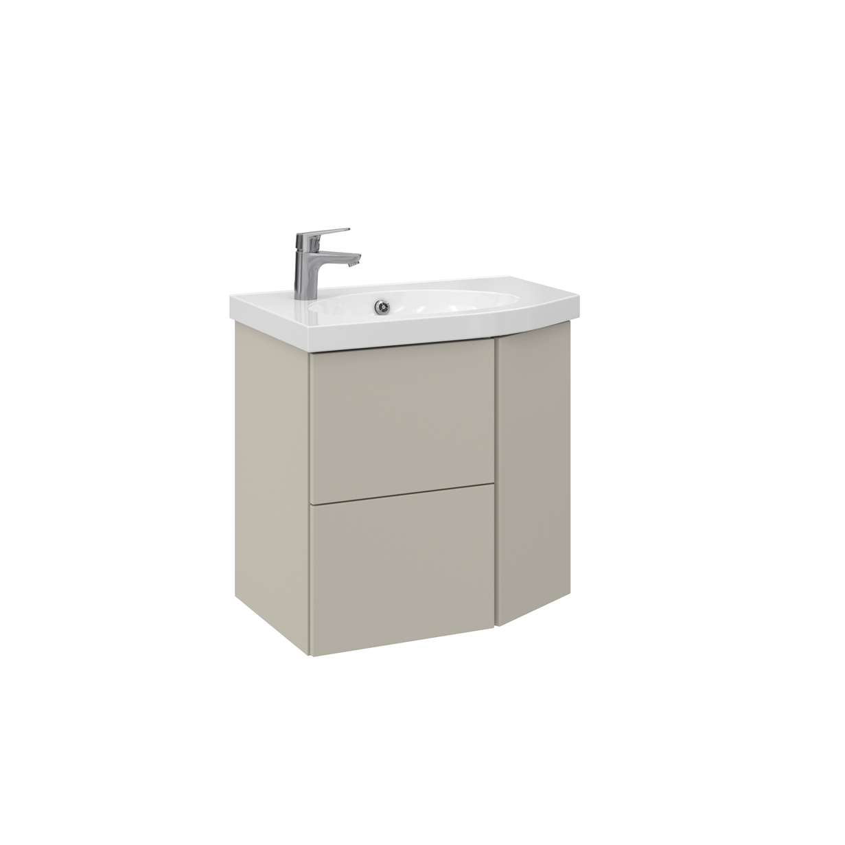Det funktionellt utformade vattenlåset ger dig massor med förvaring i de två lådorna. Under avsmalningarna finns skåp med luckor. Bakom luckorna finns en justerbar hylla och gott om förvaring. Lådor och luckor öppnas och stängs tyst, vilket ger ökad användningskomfort. Den ovalformade bassängens design är klassiskt vacker och ergonomisk att använda. Det emaljerade tvättställets ytegenskaper och utformning gör att ytorna är hygieniska och enkla att rengöra.