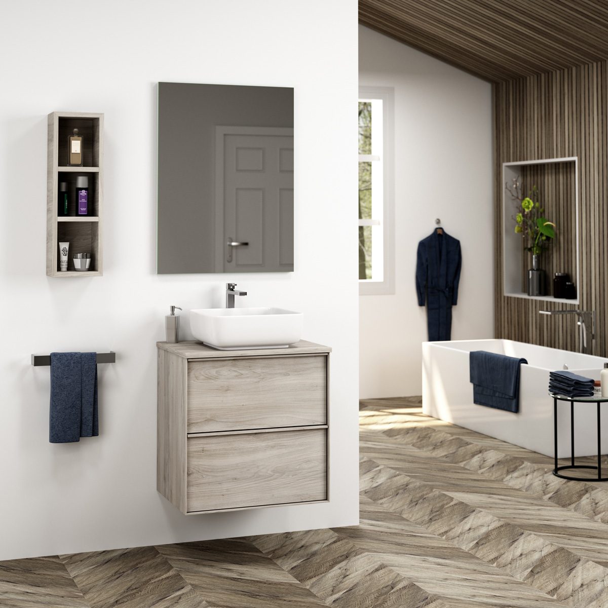 Oavsett om du väljer en ljus och naturlig ekfinish, slätlackerad yta eller en mörkare och sofistikerad valnötsfinish, erbjuder Tenfors Nordlig en perfekt balans mellan praktiska lösningar och stilren design. Serien är idealisk för dig som söker en elegant och genomtänkt möbelserie som lyfter ditt badrum till nya nivåer av funktionalitet och estetik.