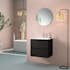 Kommoder och högskåp i serien är utrustade med mjukstängande mekanismer för lådor och dörrar, vilket både ökar användarkomforten och skyddar möblerna från onödigt slitage. Högskåpets dörrar är dessutom vändbara, vilket gör det möjligt att anpassa öppningsriktningen efter ditt badrums layout. Glashyllor i högskåpet ger en elegant och praktisk förvaringslösning, medan den handtagsfria designen skapar ett rent och modernt uttryck.