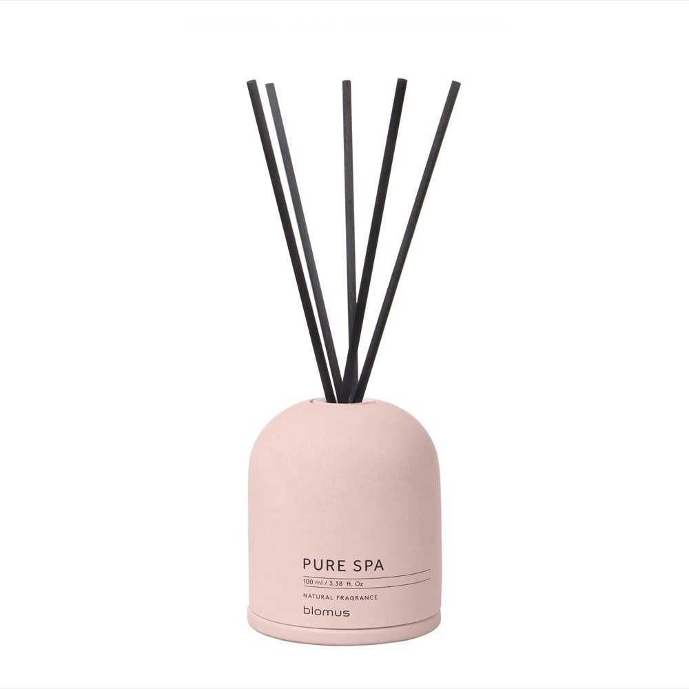 Doftpinnar Blomus Fraga Set är en underbar kollektion av nya lyxiga dofter för hemmet i återanvändbara flaskor. Intensiteten på doften justerar du genom att minska eller öka antalet vasspinnar. Set bestående av en glasflaska, ett hölje i betong att täcka flaskan med, 100 ml doftolja och 5 vasspinnar.
