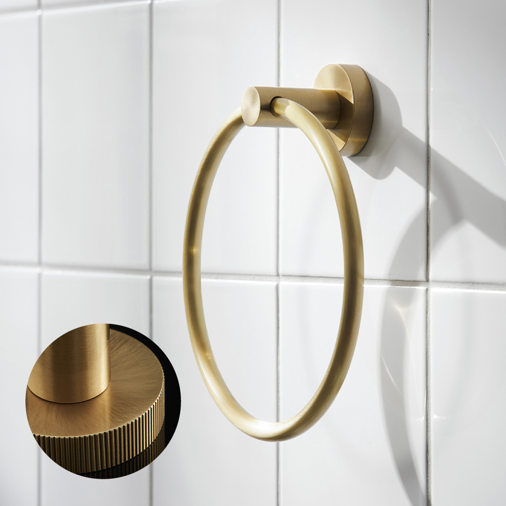 Handduksring från Miller Badrum. Väggplattans diameter är 45 mm.