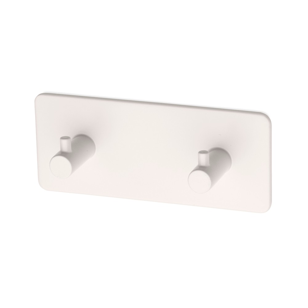 Självhäftande dubbelkrok av lackerat stål som är perfekt i utrymmen där du inte vill göra hål i väggen. Enkel och elegant design som passar i de flesta badrum.