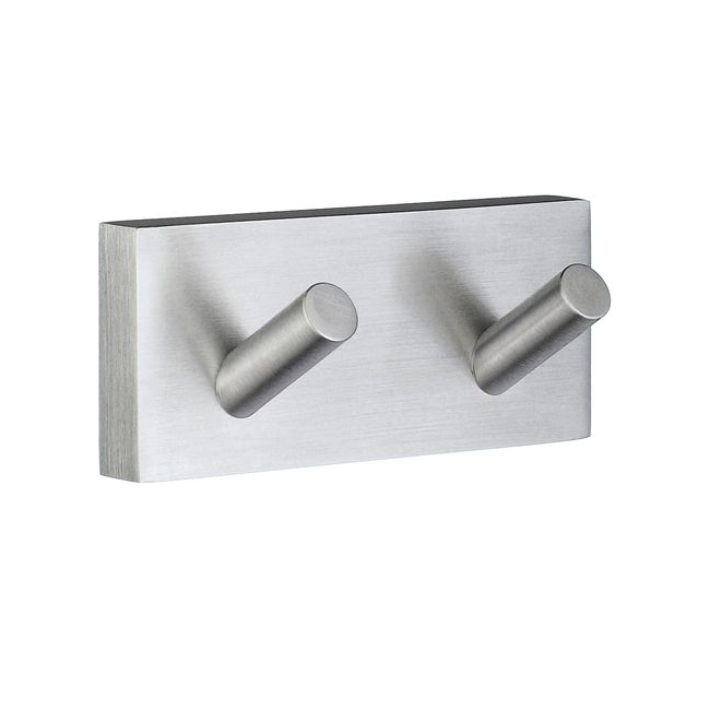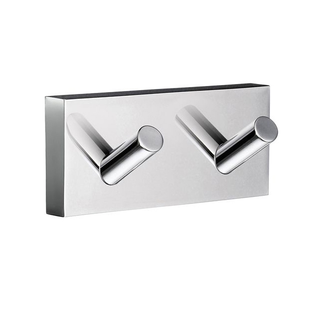 Handdukskrok Smedbo House R356 är en elegant dubbelkrok med dold montering. Kroken har en stilren, rektangulär bakplatta.