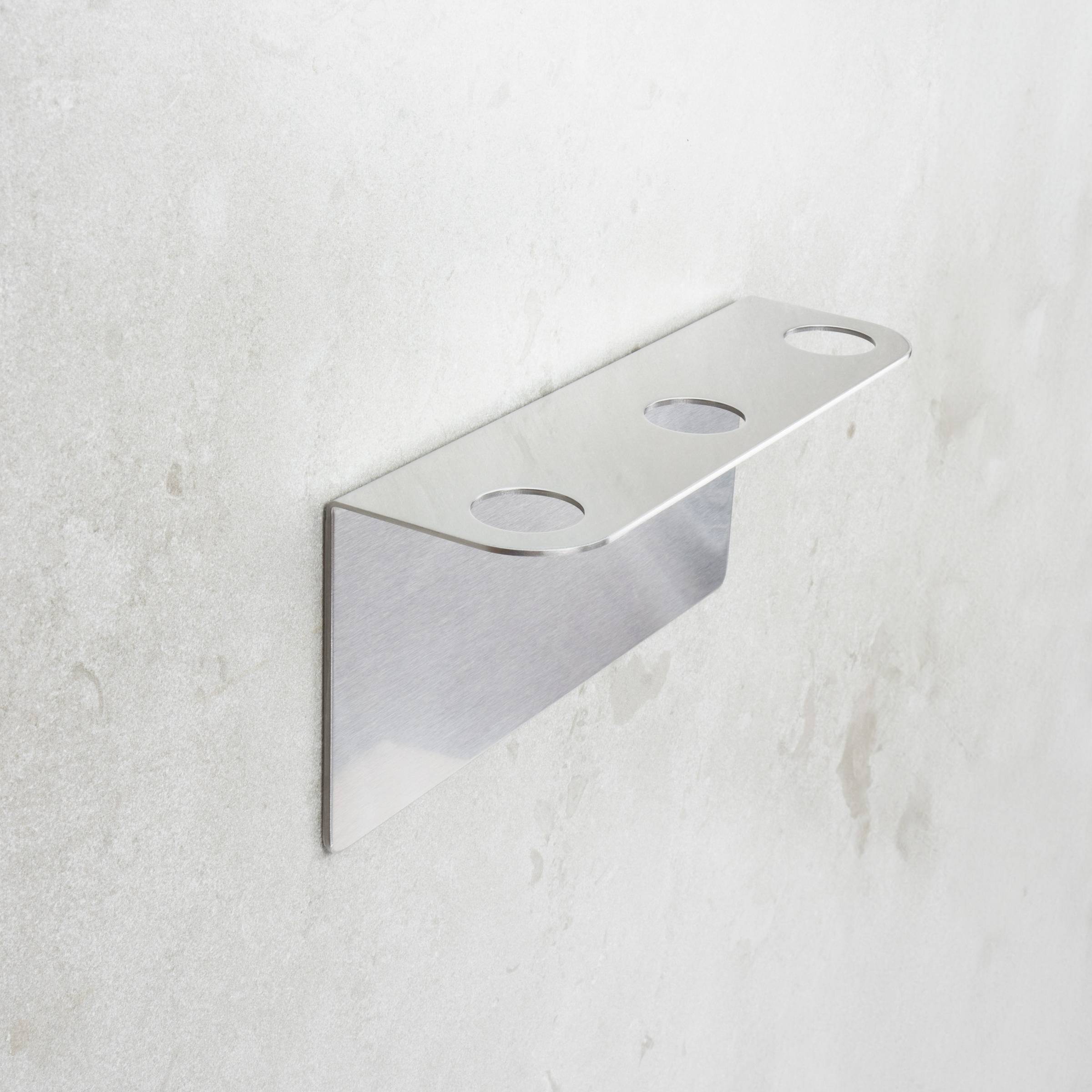 Base tvålpumpshållare Trippel i borstad rostfritt är den perfekta lösningen för att organisera badrum eller kök på ett stilfullt och praktiskt sätt. Med tre hållare för flaskor kan du enkelt få undan tvål-, schampo- och balsamflaskorna från golvet i duschen eller hålla både diskmedel och handtvål nära till hands vid köksbänken. En elegant lösning som passar både i professionella miljöer som hotell, restauranger och kontor, samt i hemmet.