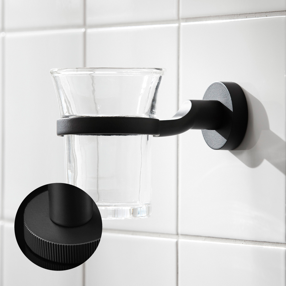 Tandborstmugg i härdat klarglas från Miller Badrum. Väggplattans diameter är 45 mm.