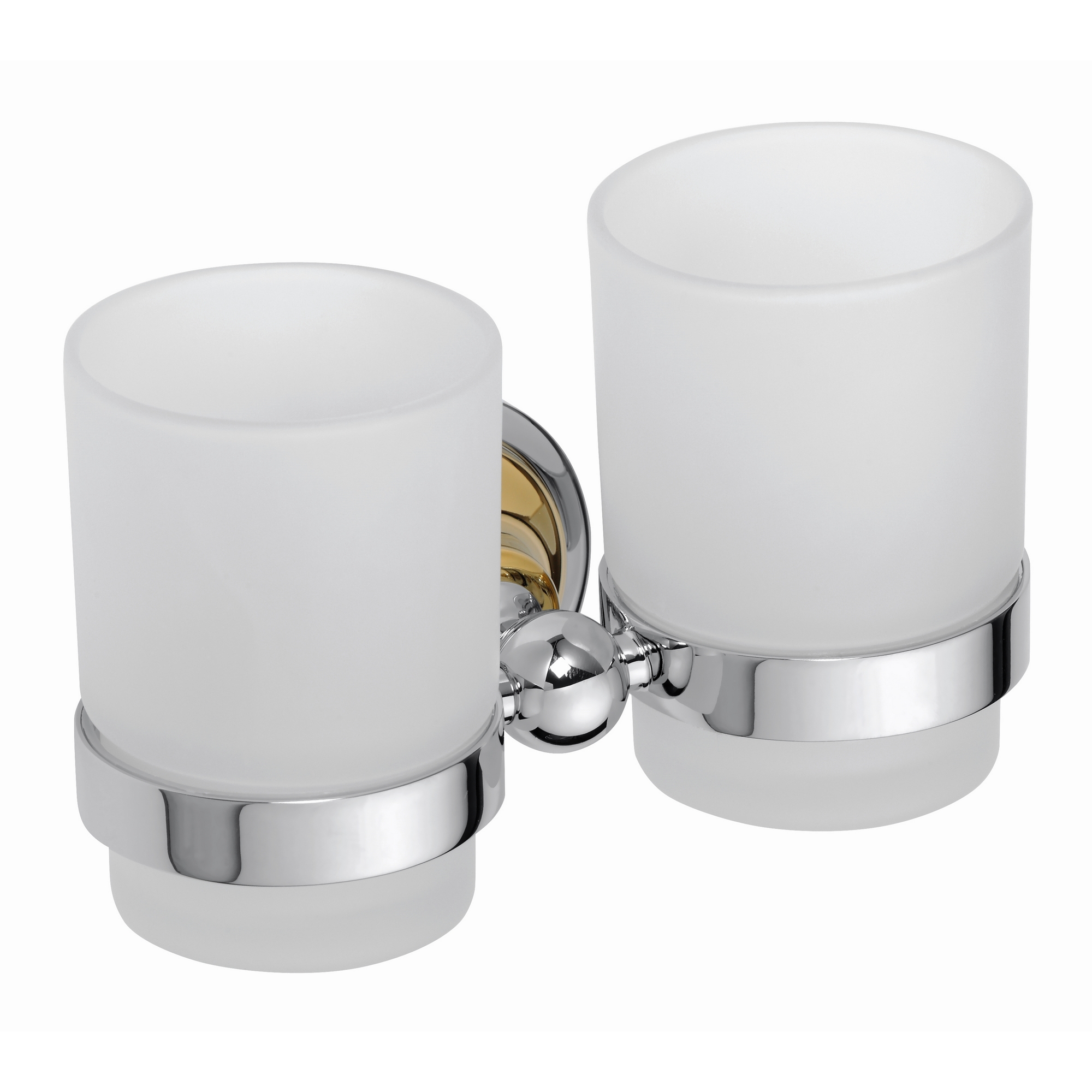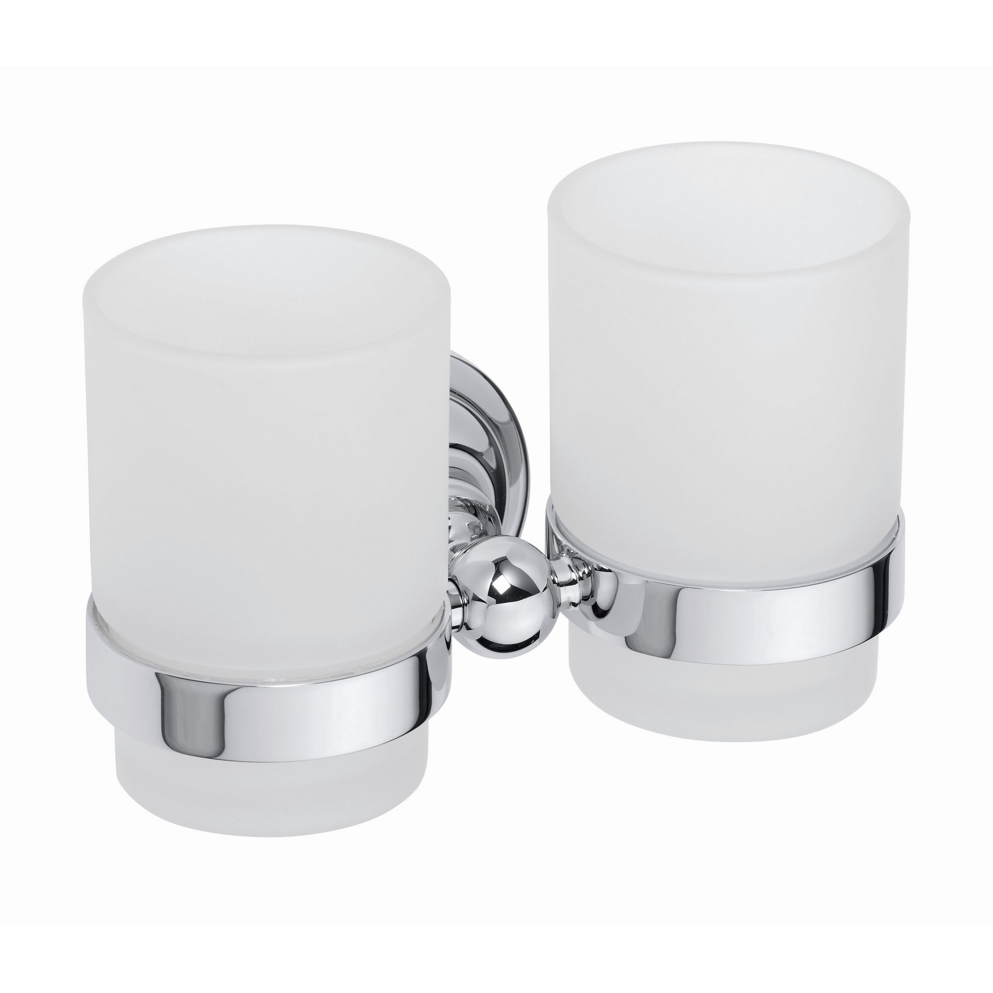 Tandborstglas Classic Dubbel från Duschbyggarna är ett stilrent, dubbelt tandborstglas i frostat glas med en hållare i metall. Det skruvas eller limmas upp på väggen.