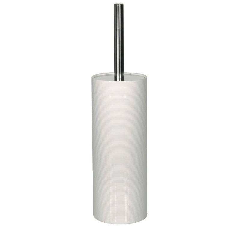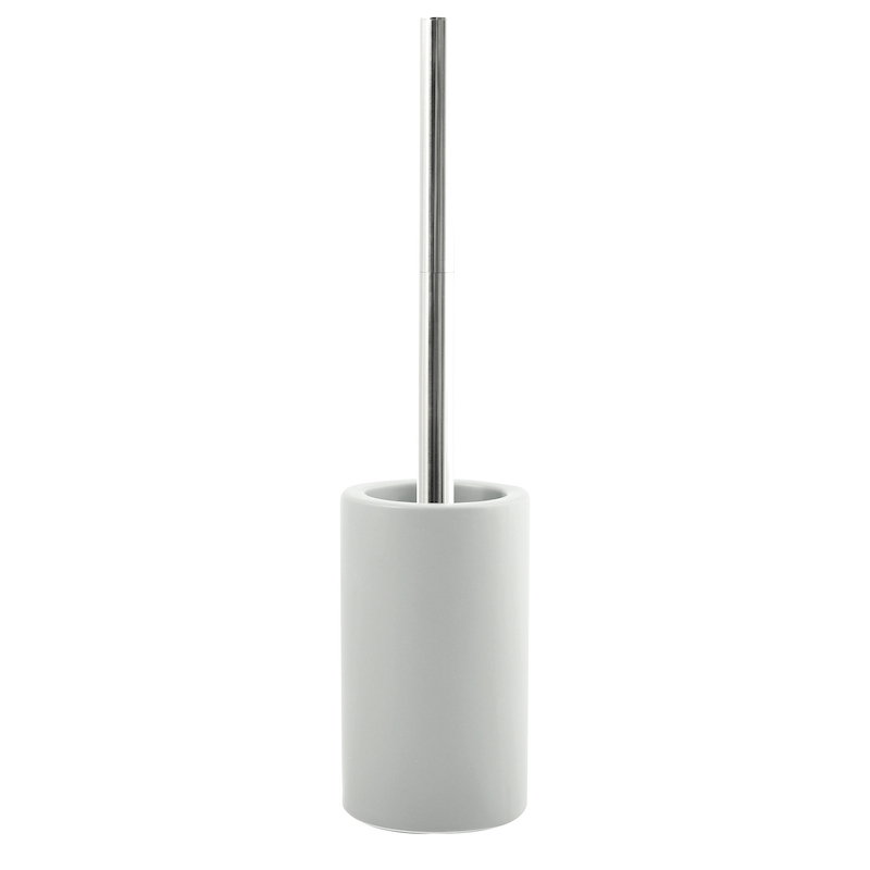 Spirella Tube toalettborste är gjord i stengods. Den vita och kromade tvålkoppen är gjord i porslin. Borsten är utbytbar.
