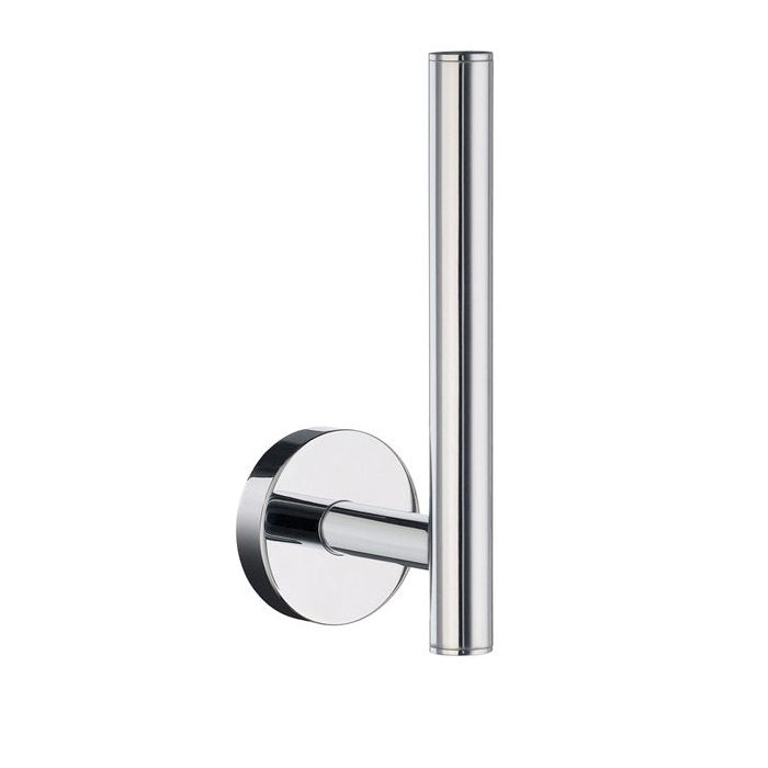Snygg reservpappershållare från Smedbo med rund bakplatta avsedd för en toalettpappersrulle. Bakplattans design tillför att reservpappershållaren har en dold fastsättning oavsett montering med skruv eller lim. Reservpappershållare avsedd för 1 st rulle.