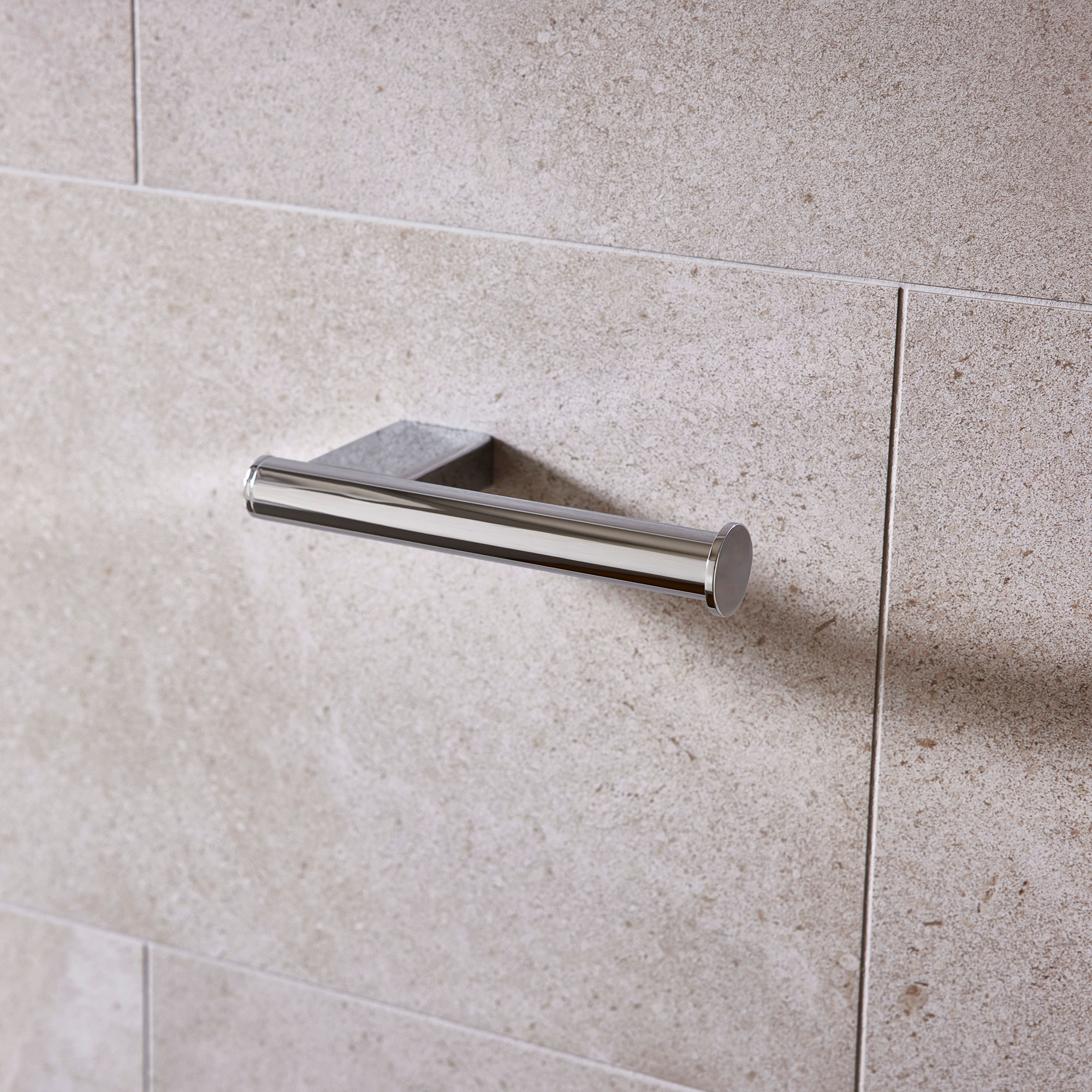 Toalettpappershållare Miller Badrum Miami är en fast toalettpappershållare och ingår i Miller Badrums tillbehörserie Miami. Denna serie går att fästa med Miller Badrums lim/häftmassa och kräver då inga borrhål.