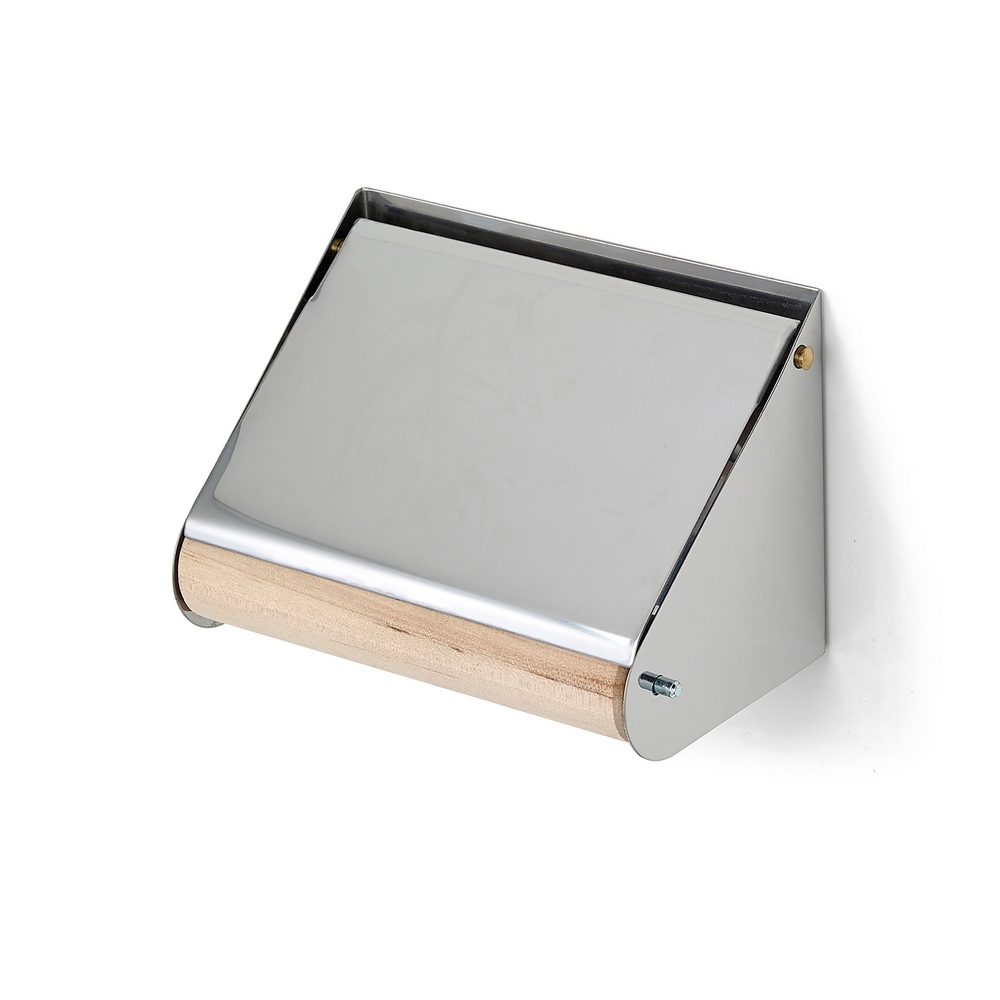 Toapappershållare 3400 från Habo är en toalettpappershållare av rostfri plåt med rullhållare av trä. Cc-skruvhål 75 alt. 80 mm.