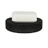 Spirella Tube Tvålkopp är gjord i stengods. Den vita och kromade tvålkoppen är gjord i porslin.