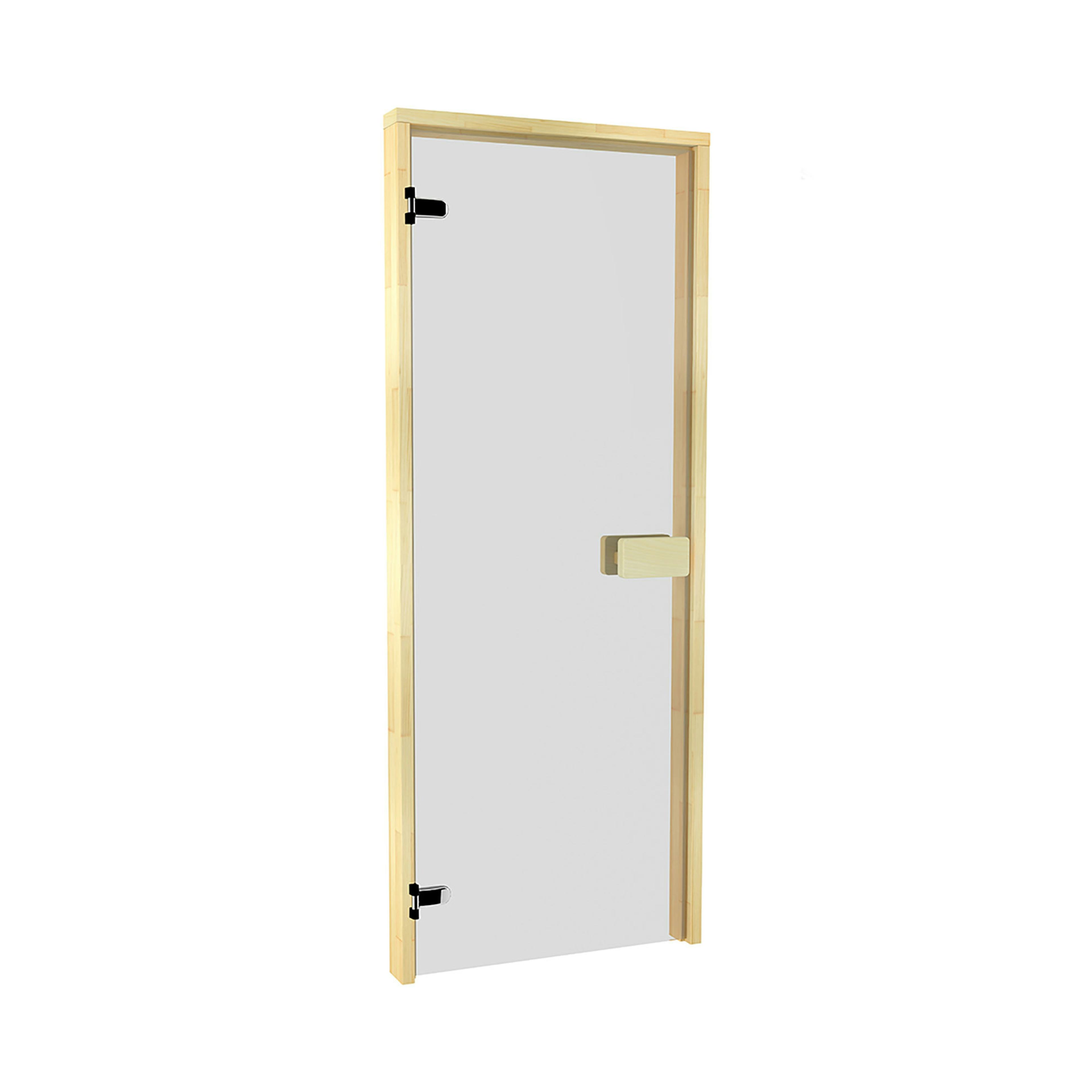 Denna glasdörr är speciellt utvecklad för bastur. Med dörren ingår monteringsfärdig 42x92 mm furukarm, silikontätning i karmen, säkerhetsglas, justerbara gångjärn, reglerbart rullås och ett stabilt rektangulärt handtag. Dörren är tillverkad i härdat glasvilket gör den nästintill okrossbar när den sitter på plats. Vid montering är glaset dock väldigt skört, då den lätt kan gå i tusen bitar om kanten på glaset stöter i hårt underlag, exempel golvet/vägg/tak.