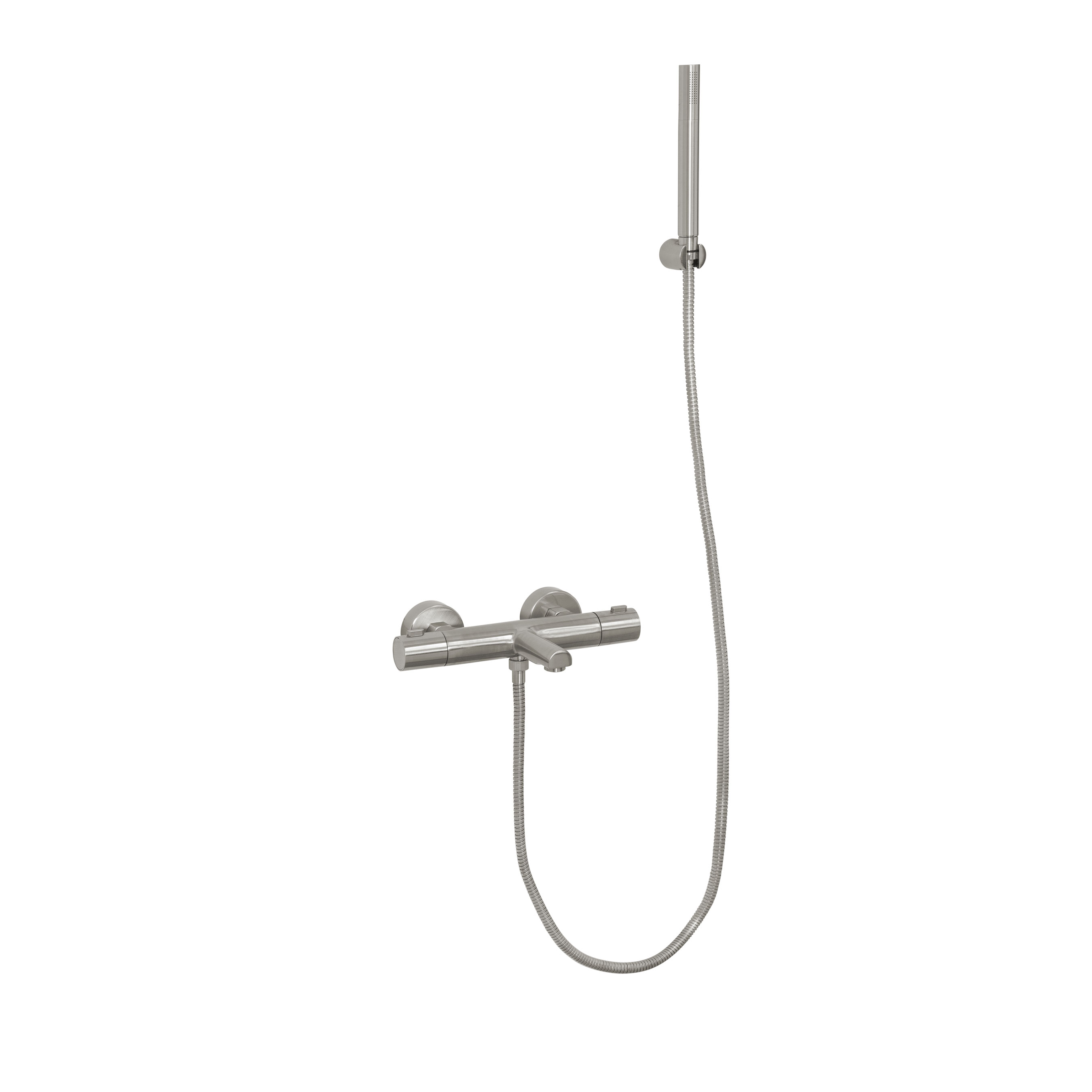 Badkarsblandare Turano från LH är en modern termostatblandare med badkarspip (piputsprång: 174 mm). Blandaren levereras med pinnhanddusch, duschslang och väggfäste.