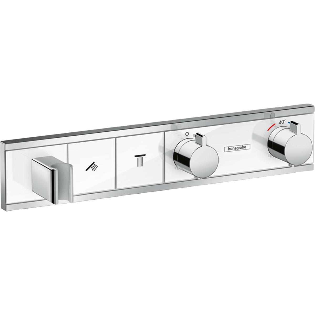 Duschblandare från Hansgrohe för 2 funktioner: Rain large och handdusch. Integrerad avstängningsfunktion och möjlighet att minska flödet ca 50% beroende på vattenmängd och installationssituation.