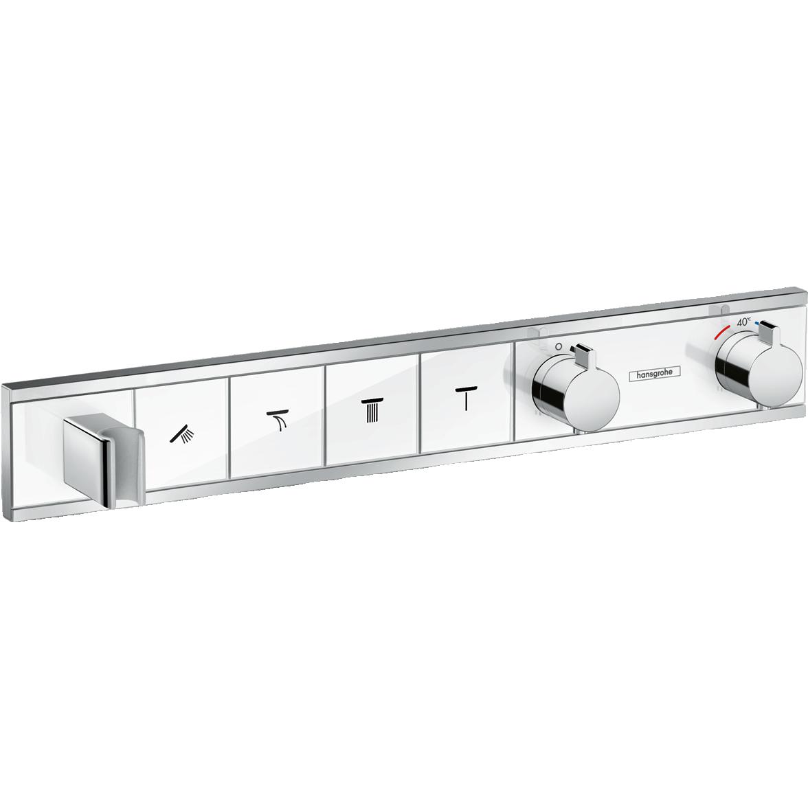Duschblandare från Hansgrohe för 4 funktioner: handdusch, Waterfall, Rain large och Mono. Integrerad avstängningsfunktion och möjlighet att minska flödet ca 50% beroende på vattenmängd och installationssituation.
