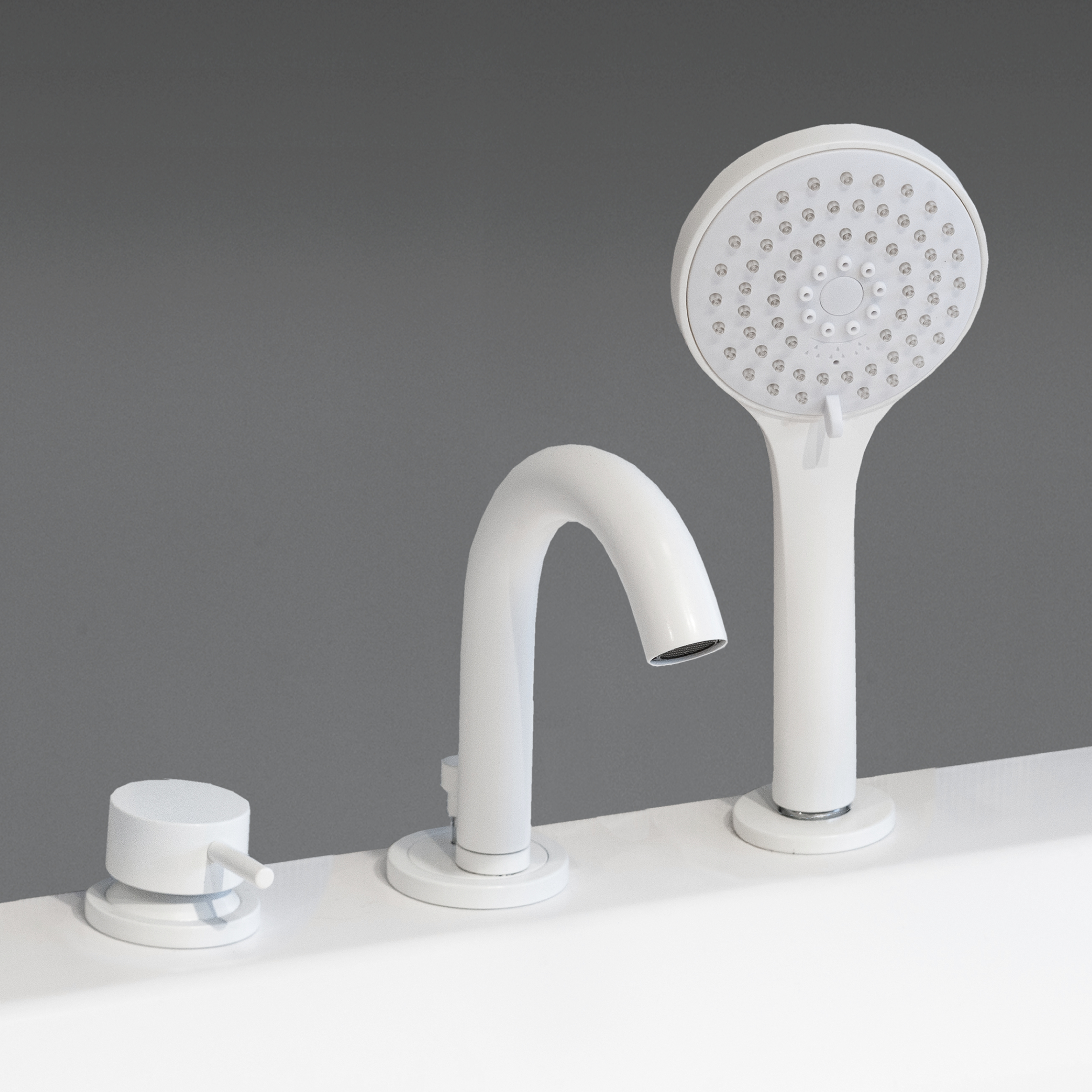 Sargblandare Torne är en stilren dusch- och badkarsblandare med handdusch tillverkad i Italien. Denna blandare är avsedd för sargmontage, 3 hål.
