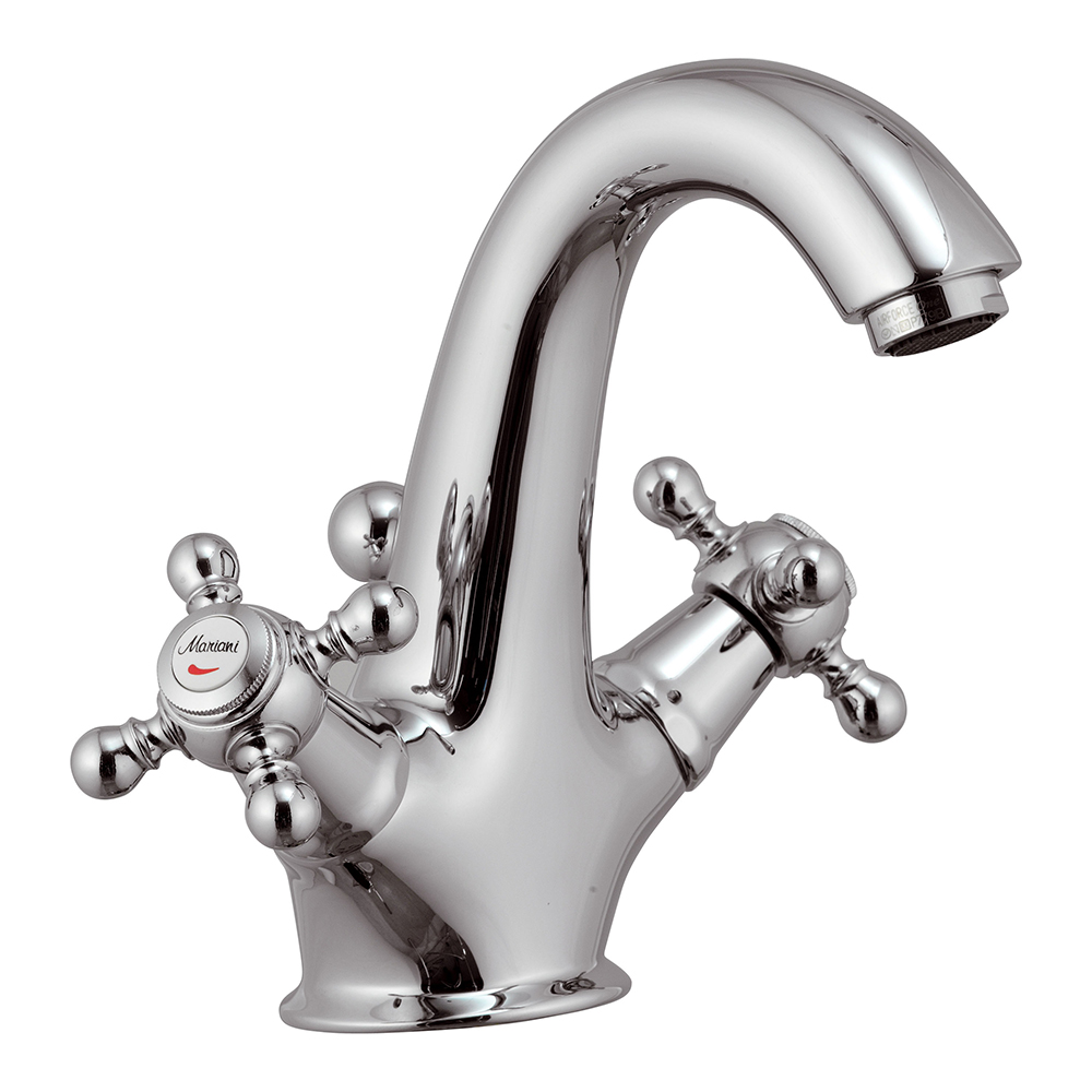 Tvättställsblandare Mariani Tradition TR395 är en tvågreppsblandare i klassisk stil och italiensk design som levereras med lyftventil. Tvättställsblandaren finns att köpa i färgerna krom och guld.