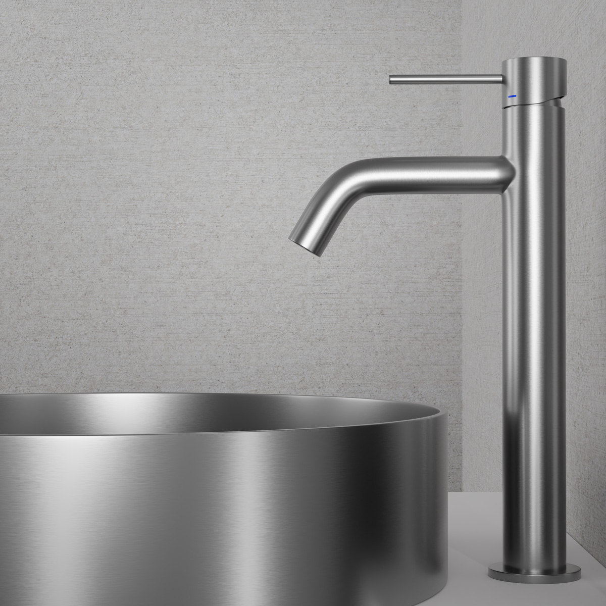 Tvättställsblandare Scandtap Steel Voyage High är en elegant ettgreppsblandare i rostfritt stål med minimalistisk design och unikt slimmade detaljer. Formspråket är en kombination av stilrena inslag och klassiska former. En hög modell utan skarv som passar utmärkt till fristående tvättställ. Försedd med kvalitativa komponenter som sparar vatten och bibehåller ett perfekt anpassat vattenflöde. Blandaren levereras med Neoperl-anslutningsslang med 10 mm slät ända.