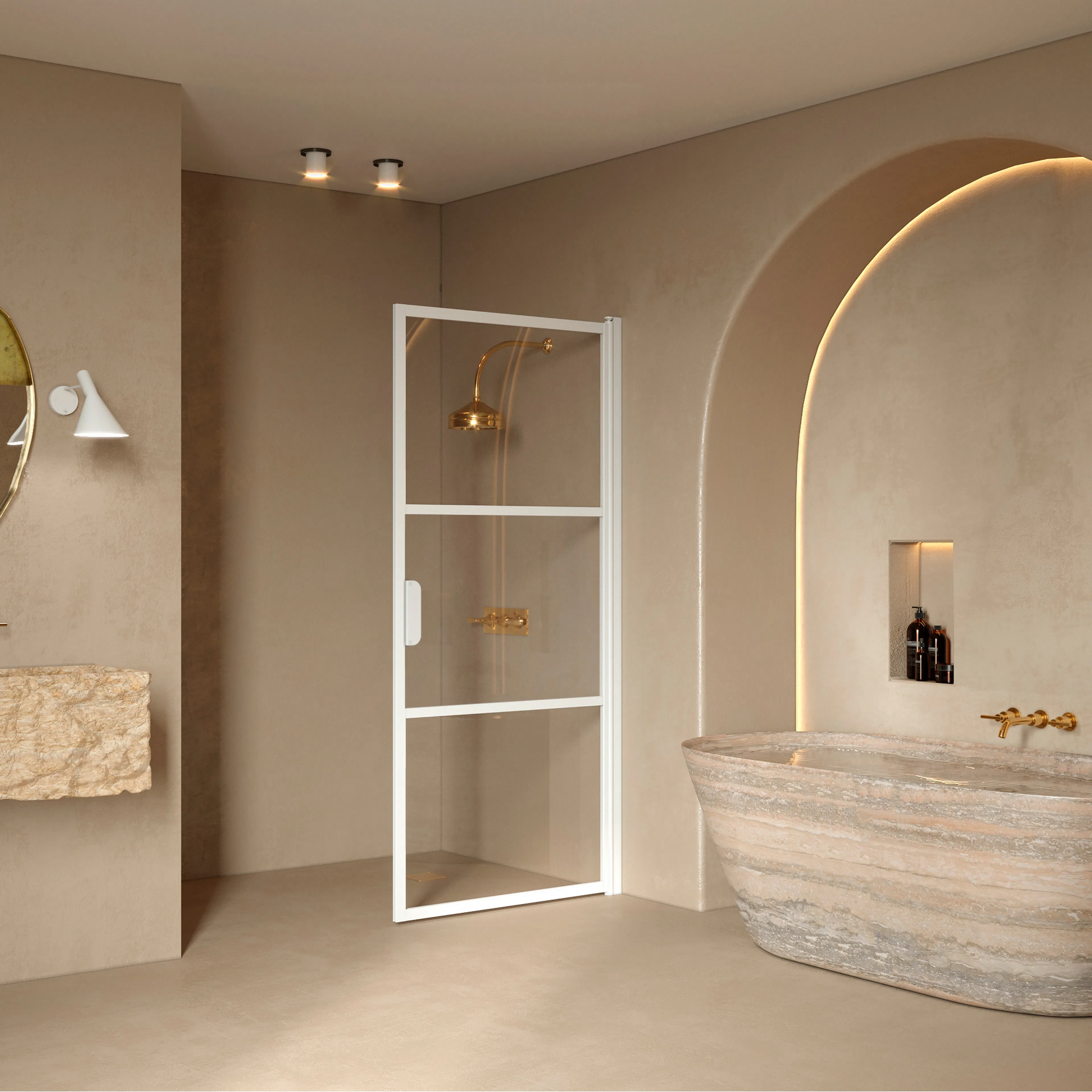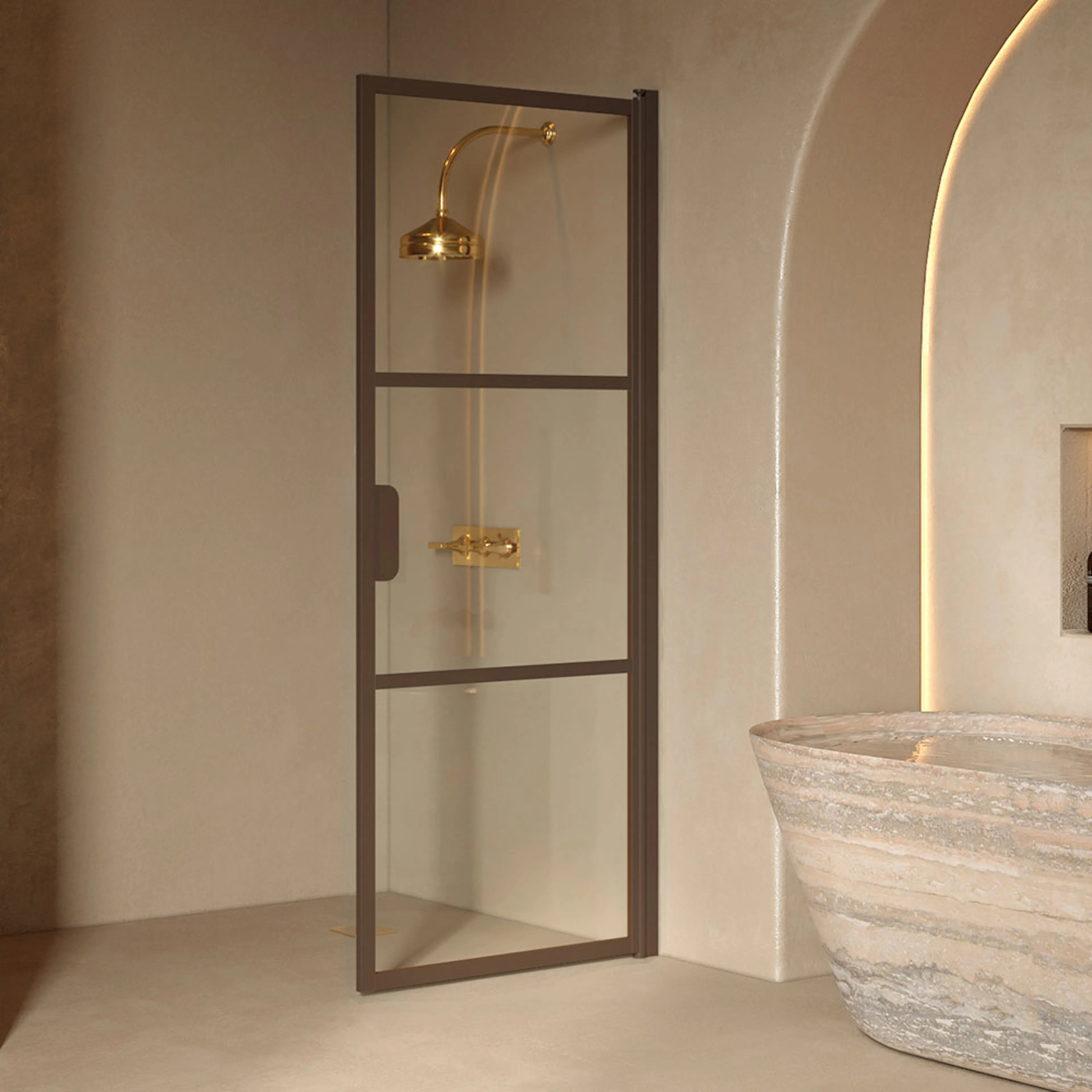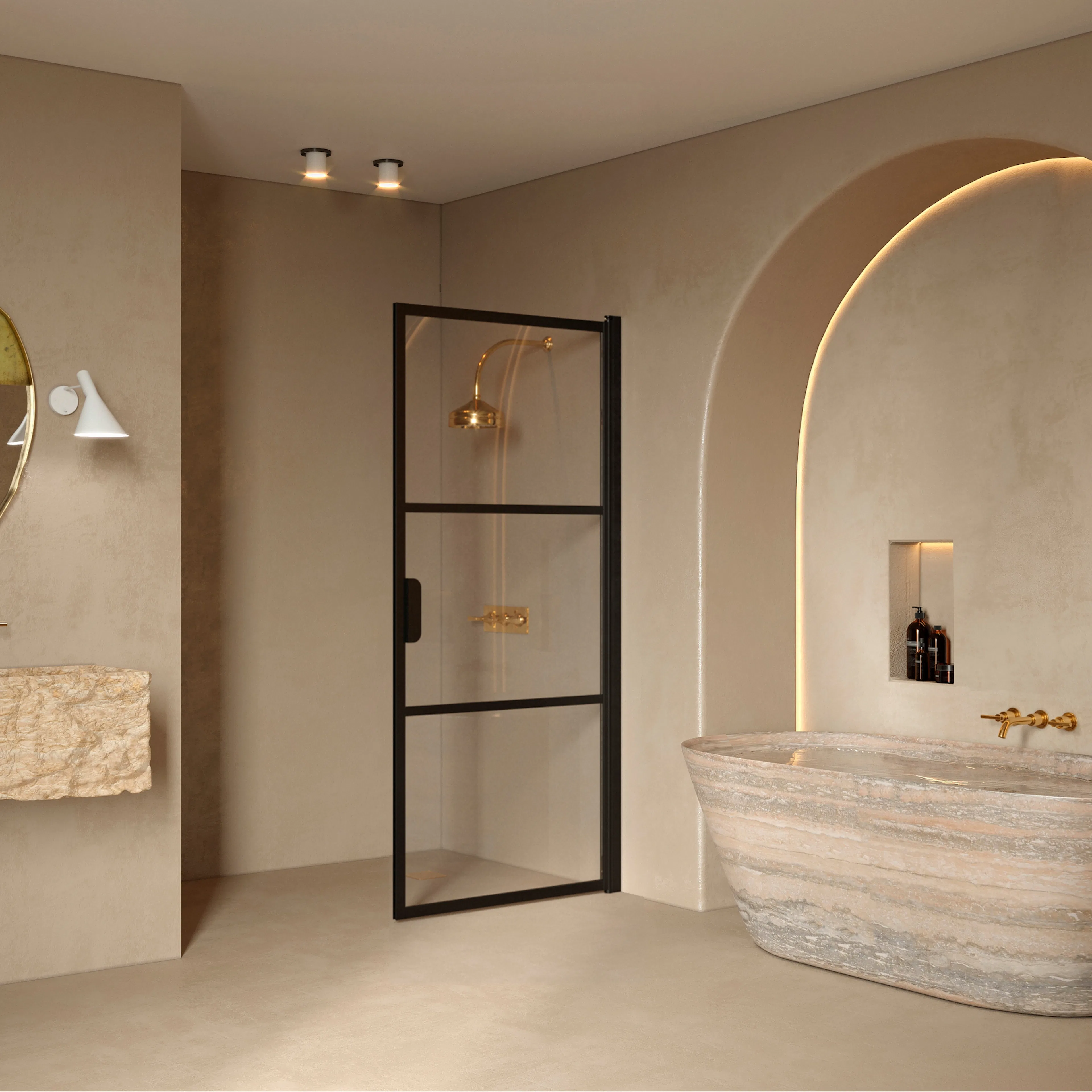 Duschdörr Hietakari Bläk 735 Tokyo Vändbar är en vändbar duschdörr i industriell stil. Den vändbara duschdörren skyddar effektivt mot vattenstänk då den monteras med en tillkommande släptätningslist. När duschen inte används kan duschdörren vändas mot väggen. Duschdörren vänds 90 grader i bägge riktningarna och förses med justerbar centrering. Centreringen strävar efter att återställa duschdörren till öppen respektive stängd position. Dörren är försedd med lyftgångjärn.