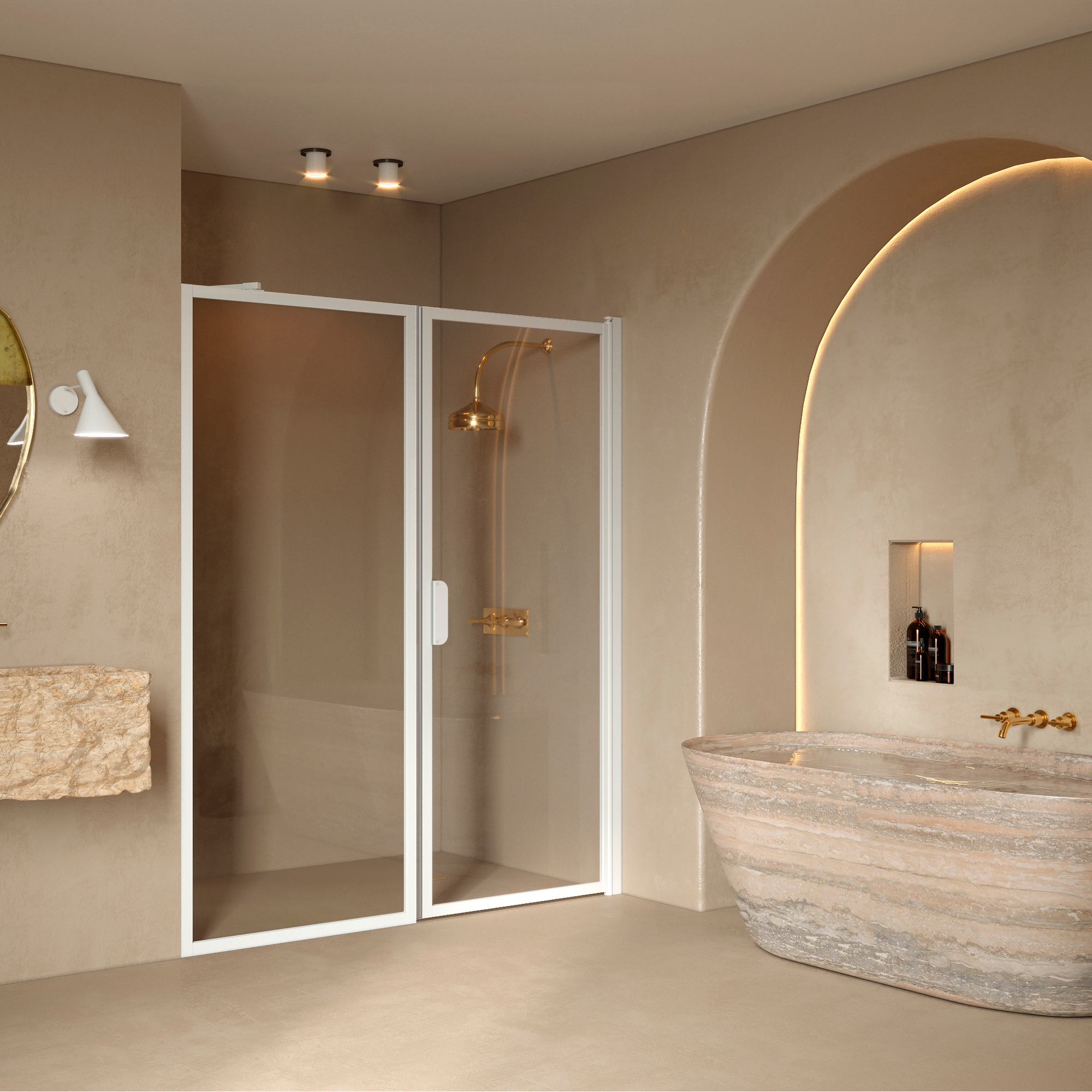 Den fasta duschväggen är fastsatt på väggfästena med självborrande skruvar. Dörrpanelen är monterad på andra sidan av utrymmet med väggfästen. Stödstången sätts upp från den övre kanten av den fasta panelen och skruvas in i byggnadens vägg. Magnettätning installeras på varje dörröppning för att hålla dörren tätt stängd. Sockeltätning kan fästas på panelerna och en tröskelprofil kan installeras under dörrpanelerna för att förbättra vattentätningen.