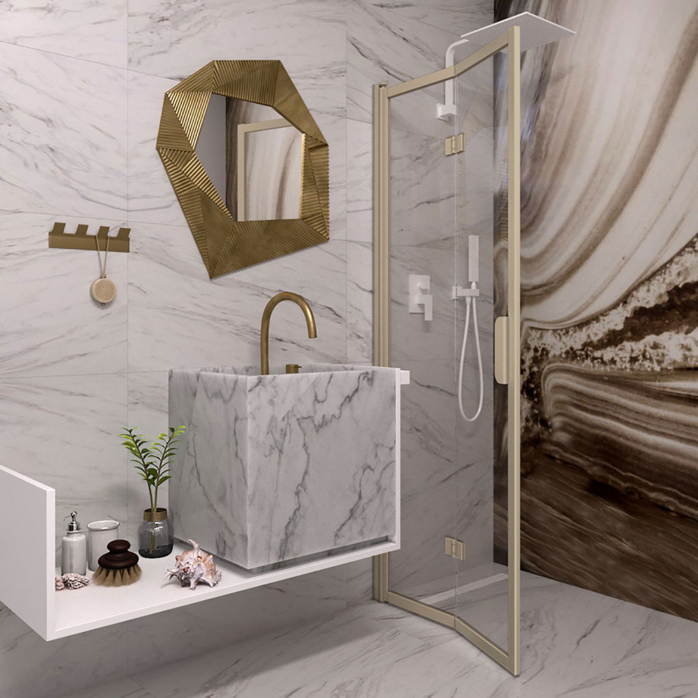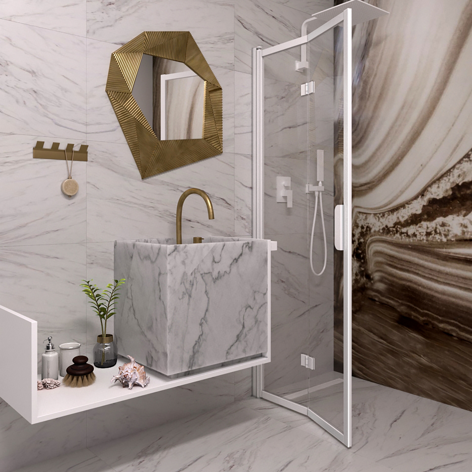 Duschdörr Hietakari Bläk 881 New York Vikbar är en vikbar duschdörr i industriell stil. Den vikbara duschdörren skyddar effektivt mot vattenstänk då den monteras med en tillkommande släptätningslist. När duschen inte används kan duschdörren vändas och vikas ihop mot väggen. Duschdörren vänds 90 grader i bägge riktningarna och förses med justerbar centrering. Centreringen strävar efter att återställa duschdörren till öppen respektive stängd position. Dörren är försedd med lyftgångjärn.