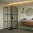 Duschhörn HietakariBläk 765 Paris Fast Vägg och Vändbar Dörr919 Fast Vägg (L1) x 717 Vändbar Dörr (L2) mm, Klarglas, Svarta Profiler