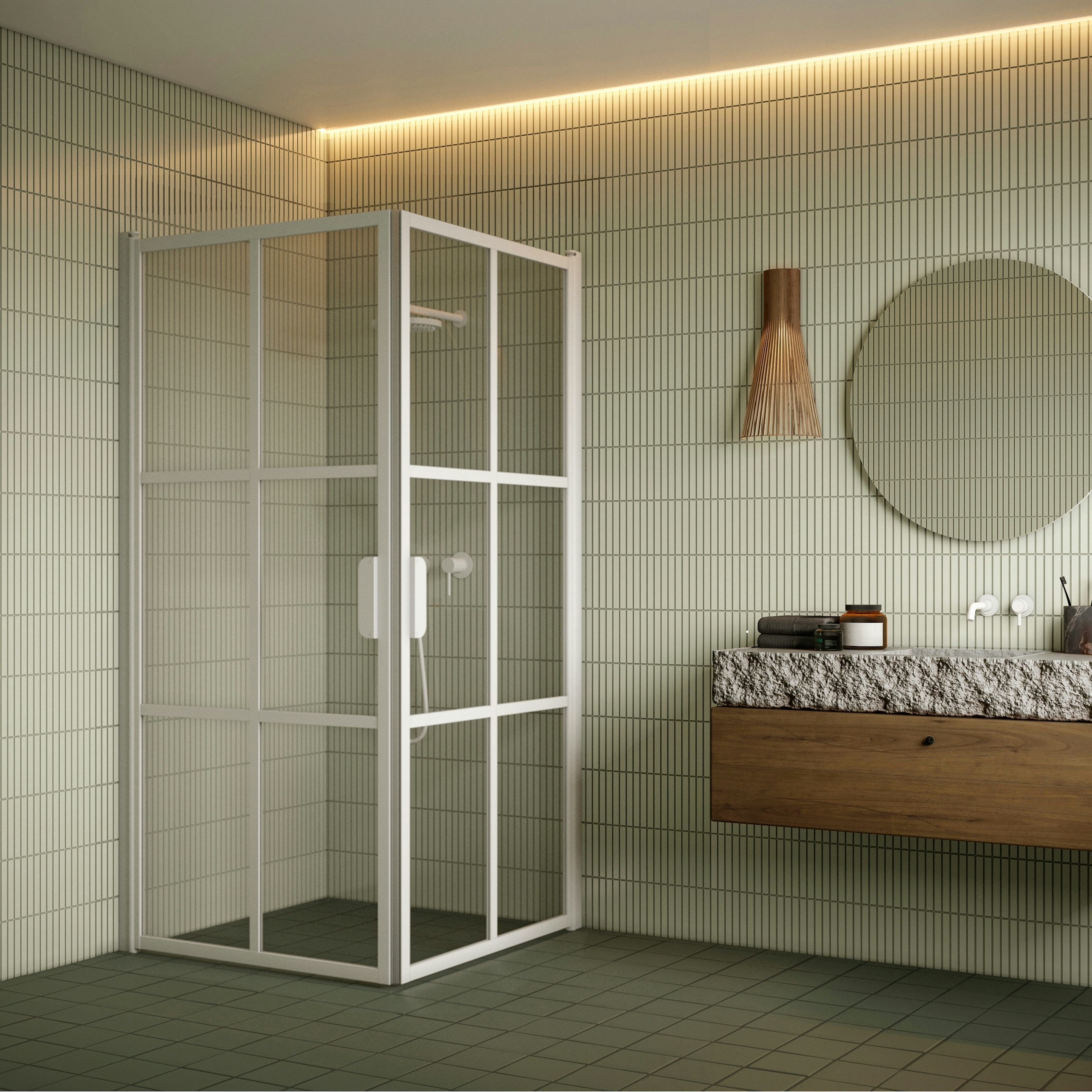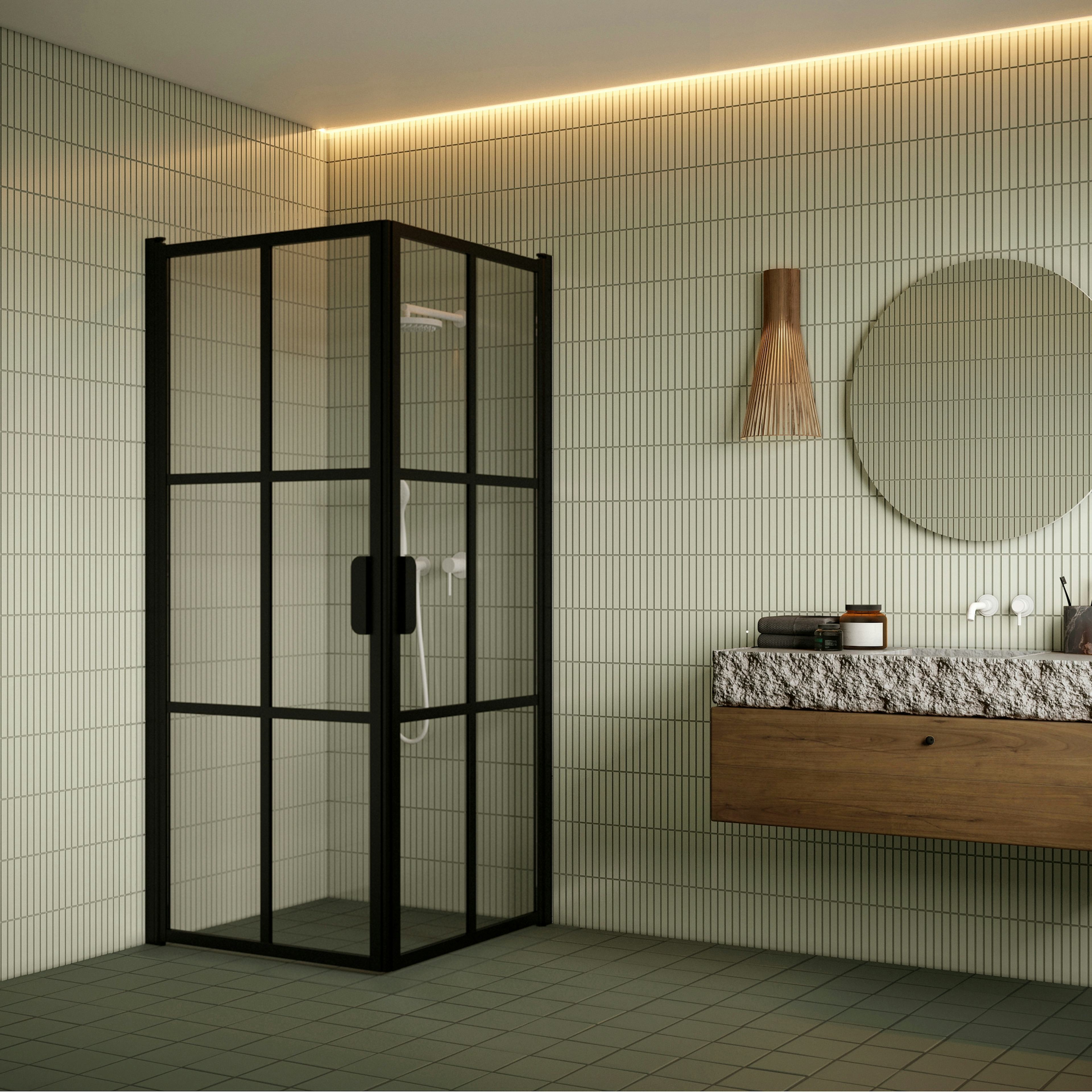 Duschhörn Hietakari Bläk 767 Paris består två vändbara duschdörrar i industriell stil. De vändbara dörrarna skyddar effektivt mot vattenstänk då den monteras med en tillkommande släptätningslist. Duschdörren förses med justerbar centrering och är försedd med lyftgångjärn. Då duschen inte används, kan dörrarna svängas längs väggen för extra utrymme.