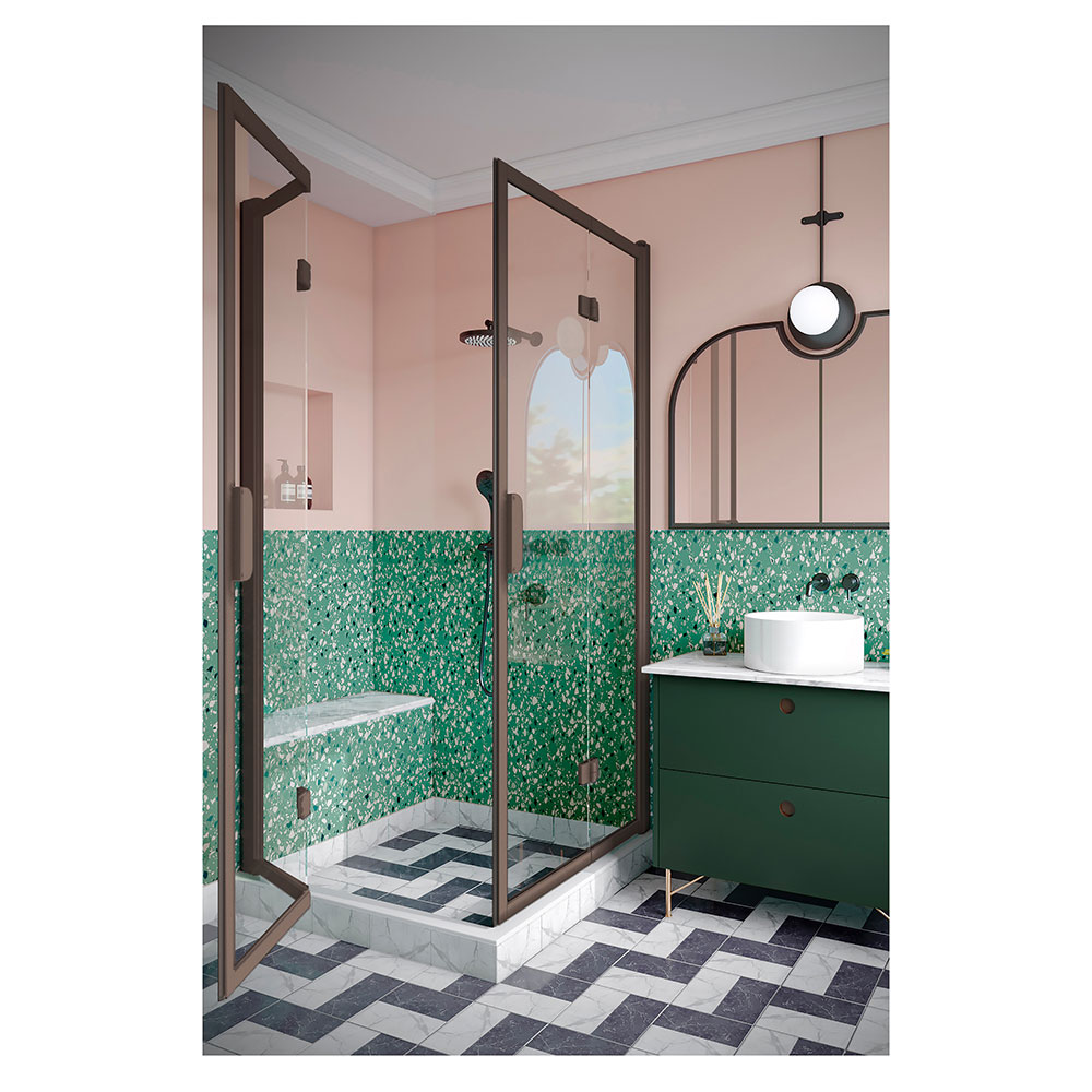 Dörrpanelerna är monterade på byggnadens vägg med väggfästen på vardera sidan av duschhörnan. Släptätning och tröskelprofiler kan installeras under dörrpanelerna för att förbättra vattentätningen. Magnettätning installeras på varje dörröppning för att hålla dörren tätt stängd.