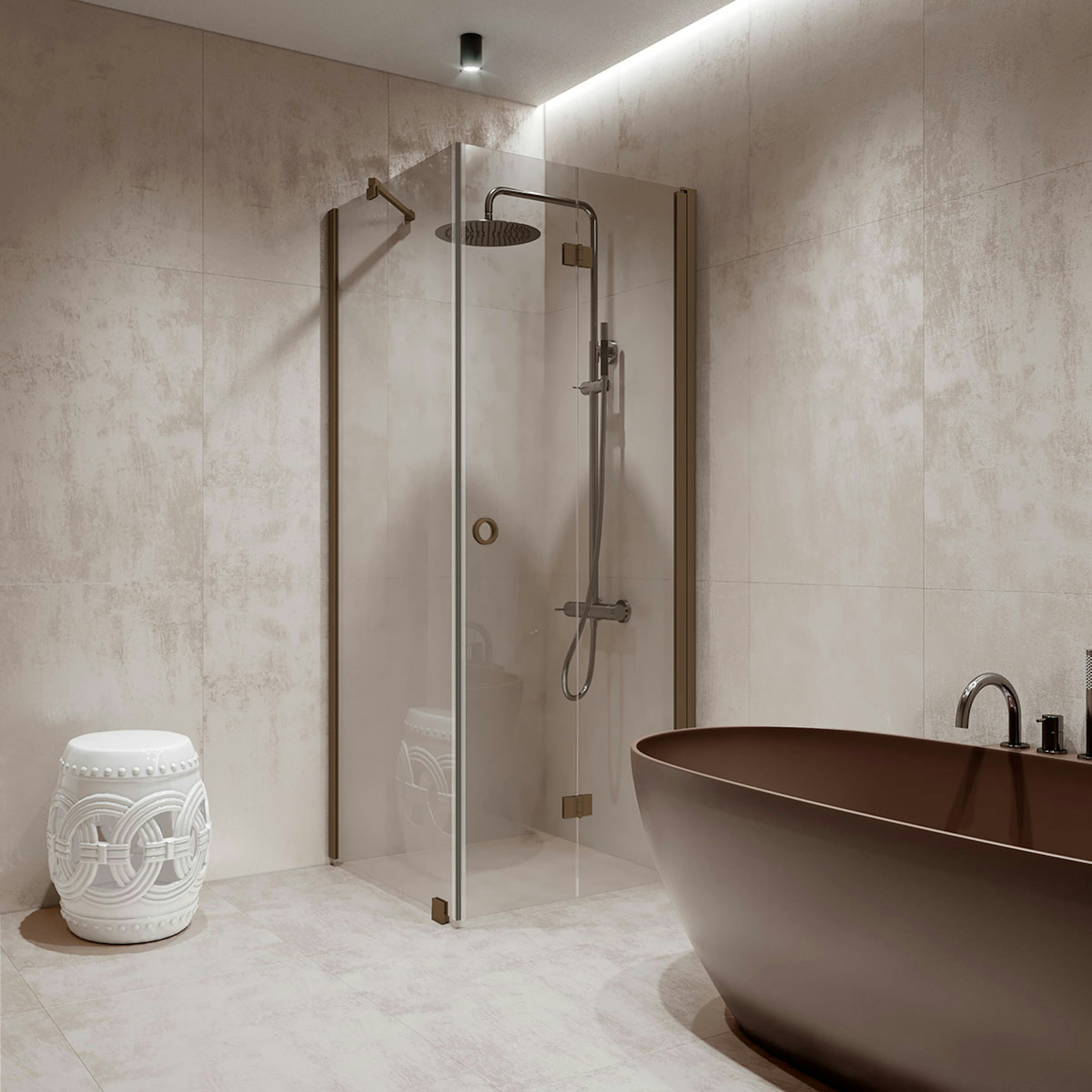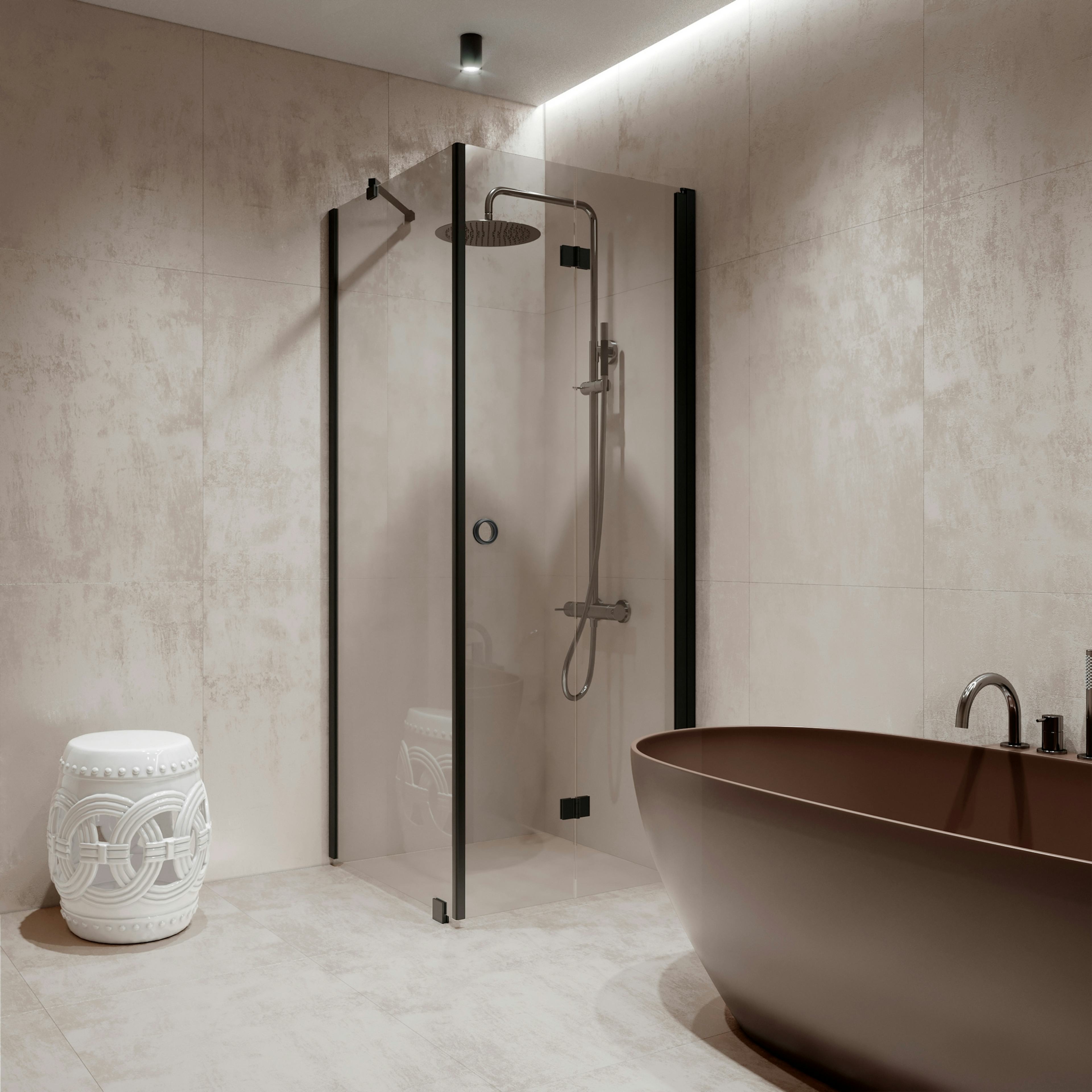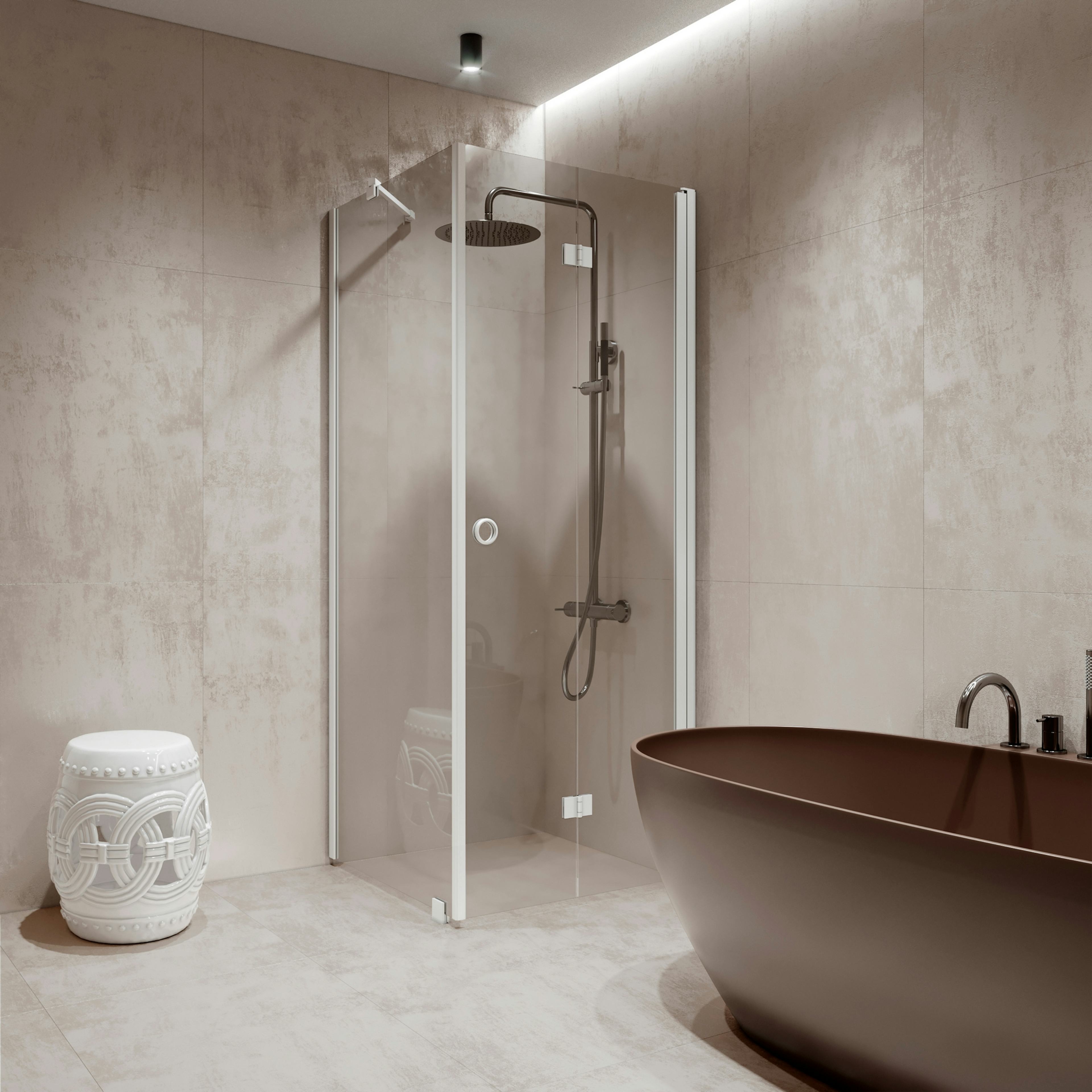 Duschhörn Hietakari Forma 369 består av en fast duschvägg och en vikbar duschdörr med stilren design. Den fasta väggen förses med ett golvbeslag som monteras i golv och ett sidostag vars position kan väljas fritt mot väggen. Istället för det sneda sidostaget, kan man välja duschväggen med ett långt sidostag, som installeras i 90 graders vinkel som finns att köpa som tillval vid beställningen.