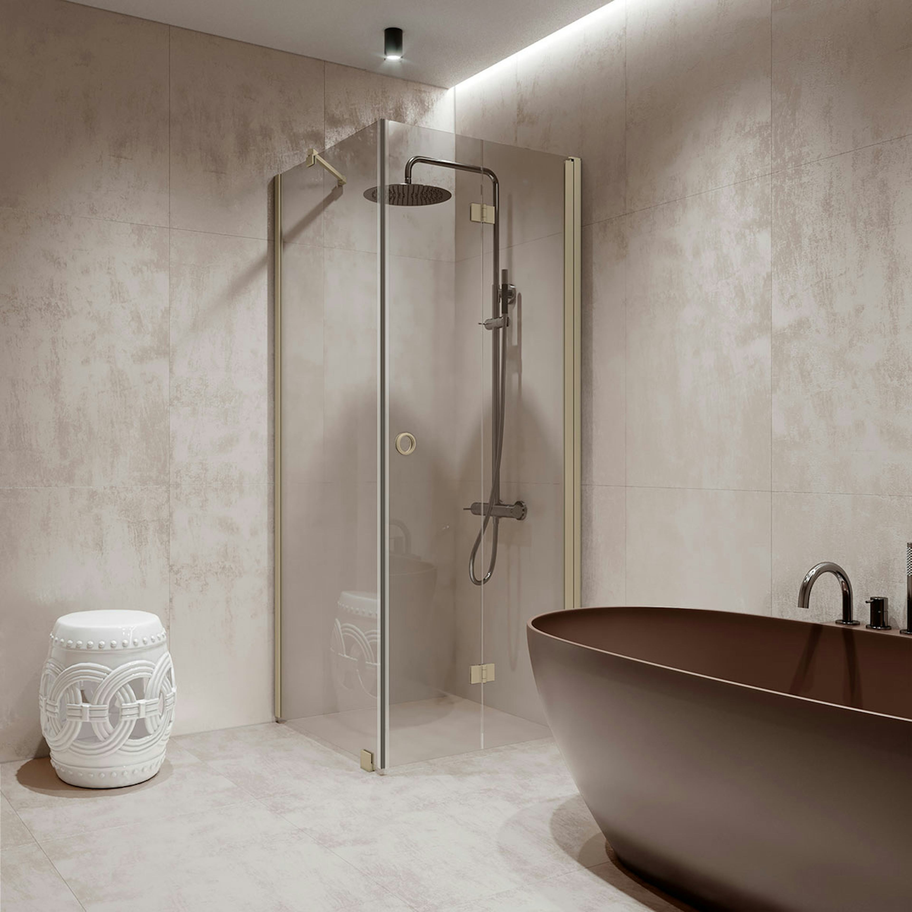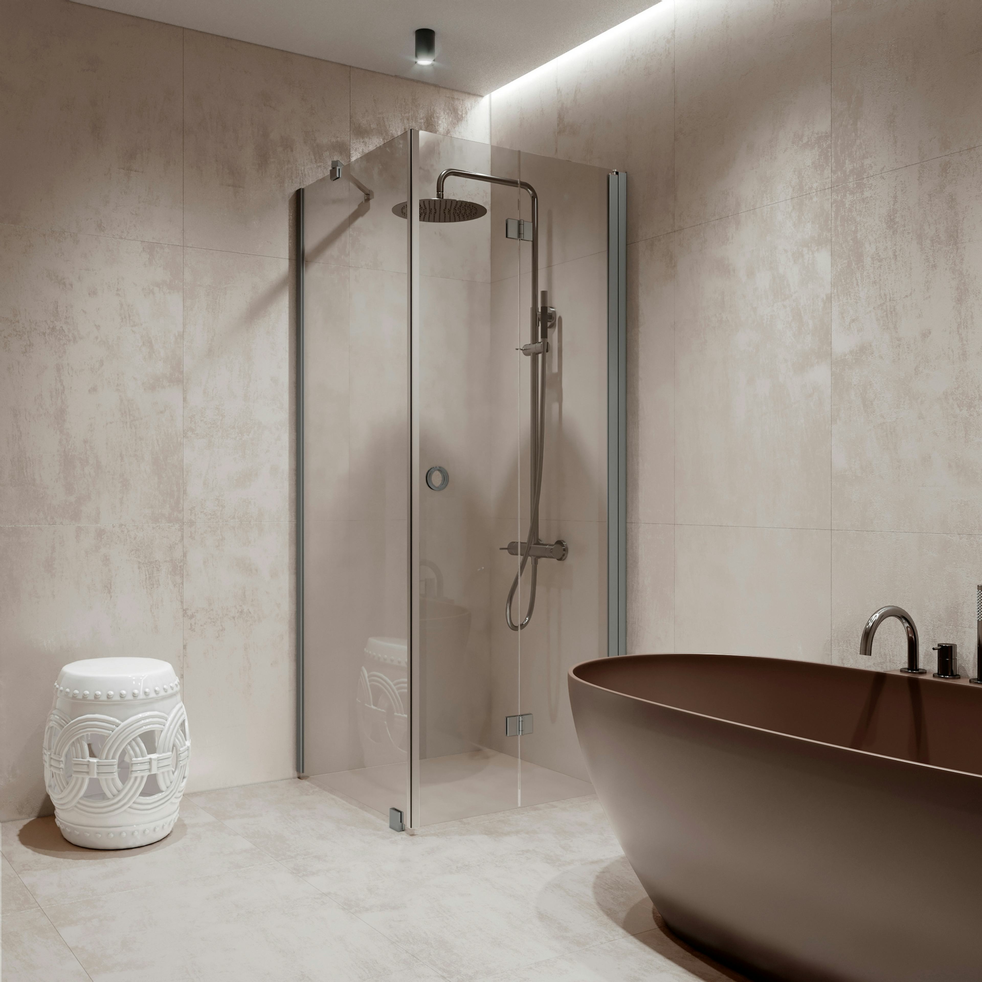 Den vikbara duschdörren kan monteras med den 28 mm höga släptätningslisten som medföljer som standard. Det finns en 50 mm hög släptätning att beställa som tillval när golvlutningen är större än normalt. När duschen inte används kan duschdörren vändas och vikas ihop mot väggen. Duschdörren vänds 90 grader i bägge riktningarna och förses med justerbar centrering. Centreringen strävar efter att återställa duschdörren till öppen respektive stängd position. Dörren är försedd med lyftgångjärn.